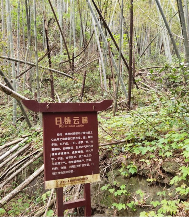 日铸岭古道上至绍兴县平水镇王化村.下至梅园村锁泗桥。据口碑资料和建筑风格州断为明清代宋吴处厚(青箱杂识》:“普欧治铸剑,它处不成,至此日铸成,故名日铸岭”。现存较好的一段为祝家村至梅园村锁泗桥,南北走向,全长约2000米,路面宽1.3-1.5米.共有石2000余级。