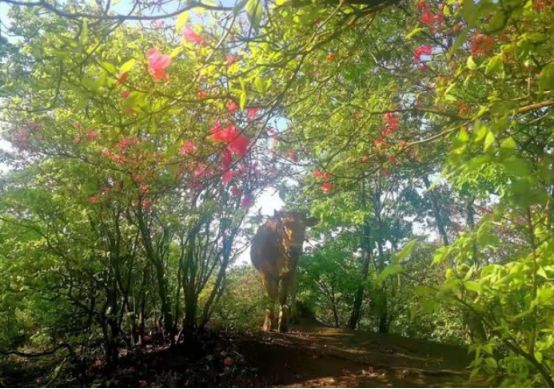 爬山遇到了一只牛,它在看我们,我们也在看它。