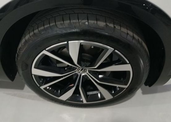 看看这就是揽境的固特异F1胎。它这个轮毂也不错,还挺有科技感的。