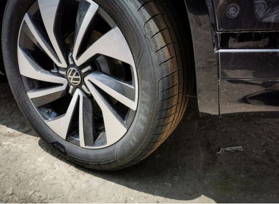 △走进一看配置的是固特异F1轮胎 ,固特异轮胎EagleF1 SUV弯道之王一般在奥迪奔驰保时捷这些车上用的相对多一些 ,主要是高性能硅胶配方即使轮胎磨损后,依然保持出色的抓地力,配合双色双五辐18英寸轮辋,时尚与动感兼备。
