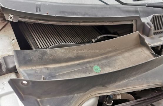 扳开外侧的两个卡扣,就可以很轻松的取出空调滤芯了,看着真是脏。