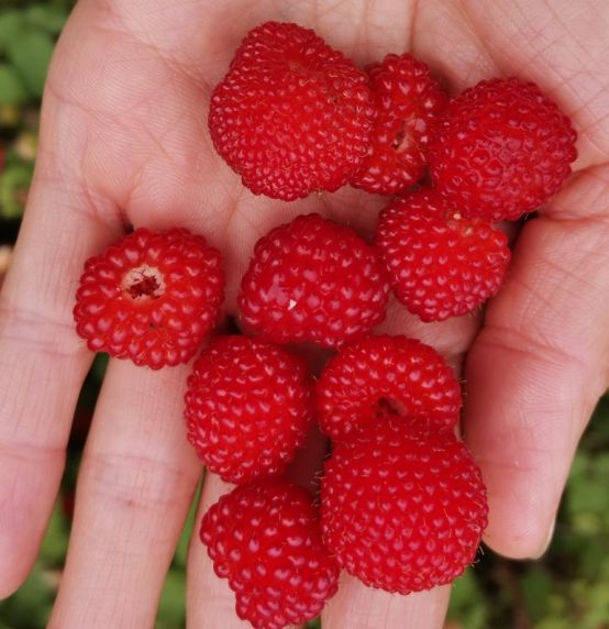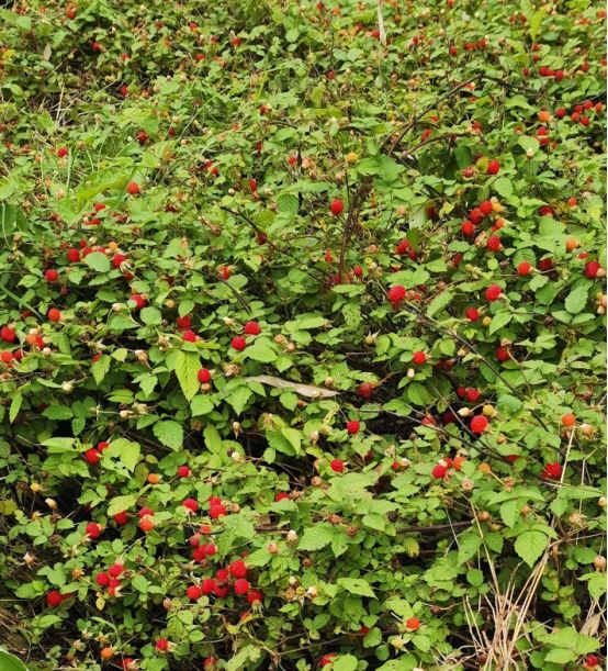 山上满山都是,带刺的树有点像玫瑰,碰那都扎人,就果子好吃,有点像草莓不过它是空心的,有点像杨梅,不过它.是甜的,味道有点像车厘子。有点不是树,是带刺藤条,果实是一样的,白色的花像梅花一样白,不过比梅花大一倍,招蜂引蝶,未成熟的果是绿色的,不空心,微酸开胃,可以加点辣椒加糖,可好吃。或拿竹筒前后各塞一颗果用棍挤压到小一点的另一端,挤压果实中间空气最终爆炸射出一端果实,射程10米左右,放鞭炮-样,继续塞果实,可以连续发射超级好玩。果实也可以做成罐头,果酱,超美味,就是要先过盐水。老人说蛇会对果实喷毒,不能摘了直接吃。