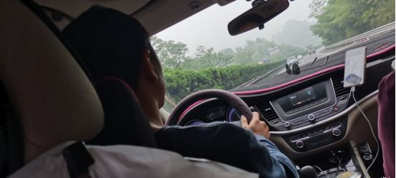 △雾蒙蒙的非常有意境,安全驾驶双手握方向盘哦。
