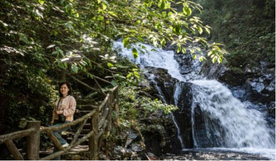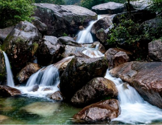 天女散花瀑布位于江永县千家瑶乡潘家园附近。它高约130米,宽约40米,呈倒“7”字形。这是一个三瀑布,它从山上奔流下来,像天上女神在撒花一样飞溅。