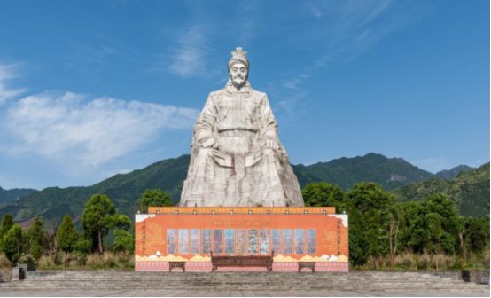 在盘王广场的中心毒立着中国最大的盘王雕像。这座雕像高21米,雄伟壮丽。塑像后面书有盘王赋∶"瑶族始祖,名瓠姓盘。忠诚智勇,不孚众望。昔时平王,遭遇国难。盘王挺身,勇揭皇榜。智灭敌寇,凯旋朝堂。平王守诺,赐女封王。王携公主,隐居南山。游耕狩猎 ,拓土开疆。繁衍后代,枝茂叶张。六男六女,赐姓发详。驯归六畜,稼穑五粮。教化文明,驱除蛮荒.."。