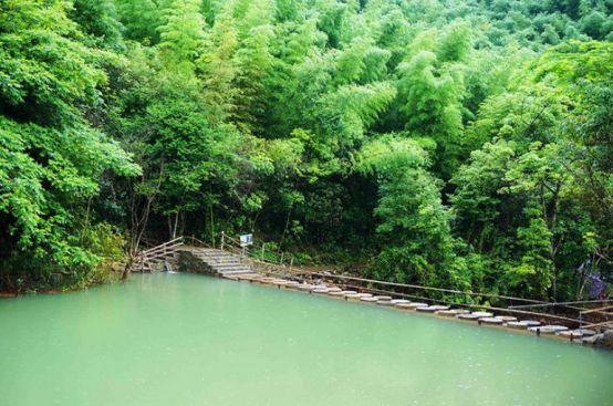 一潭绿水仿佛化作一块美玉镶嵌在着郁郁葱葱的山林间,别提有多美了。