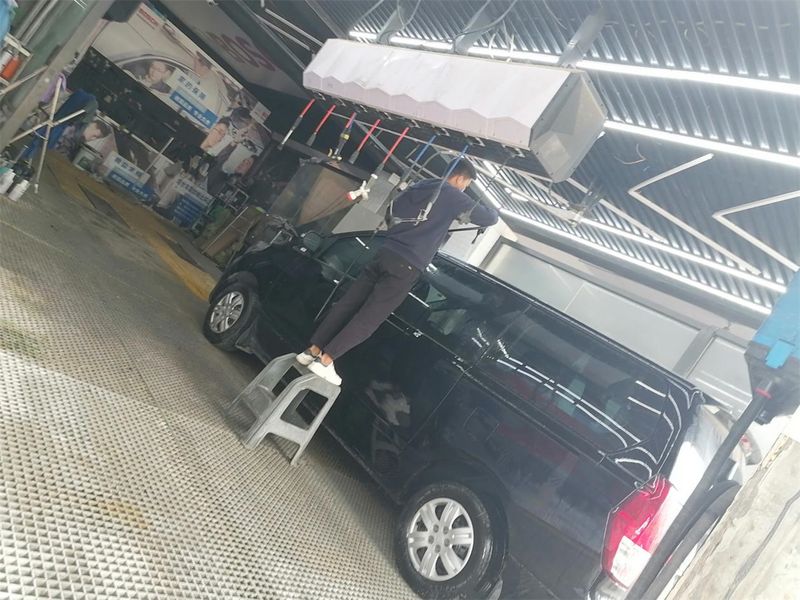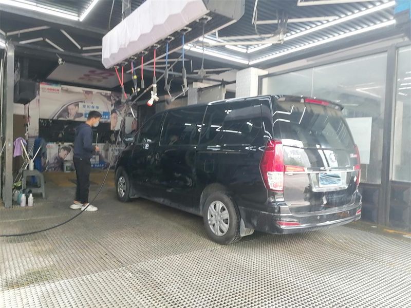 随着师傅一声热热招唤,一脚油门开进去,洗车开始!