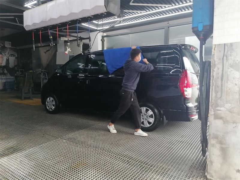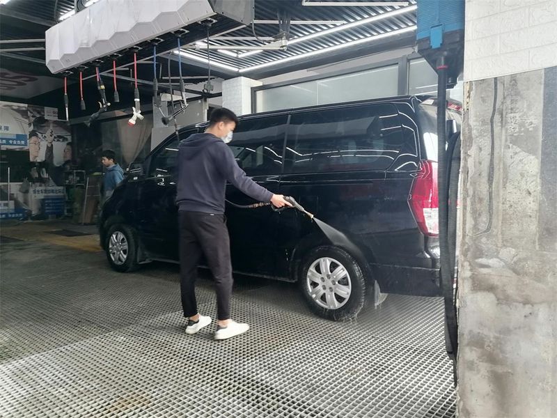 随着师傅一声热热招唤,一脚油门开进去,洗车开始!