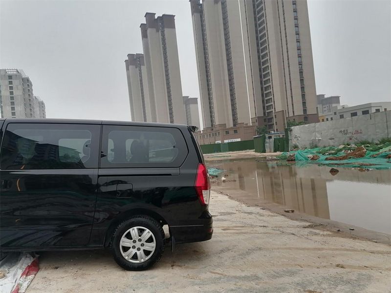 这边工地刚完活儿,今天过来接工人,下面积水太多,车子直接开到上面来。