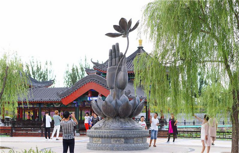 发现还有一座颇具禅意的雕塑。荷花其实是印度的国花,印度又是佛教的发源地,莲与佛彼此联系,难怪西游记里观音和如来都坐莲花宝座。