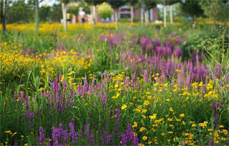 黄色和紫色的花错落有致,让人忍不住多看几眼。