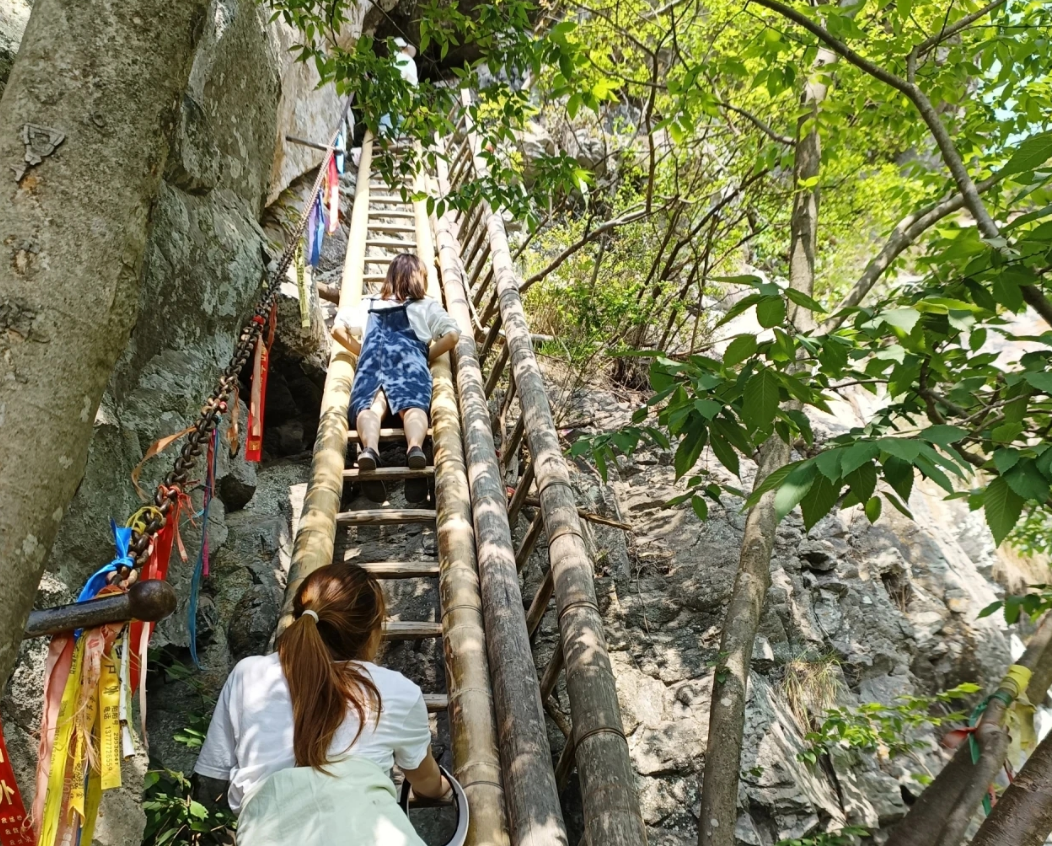 划岩山还是很惊险的,山上有很多的梯子和木桥,比较旧,爬行过程一定要注意脚下和安全,山上岔路口很多,第一次来打卡的话最好结伴而行,记得跟着彩带走,可以少走很多弯路。