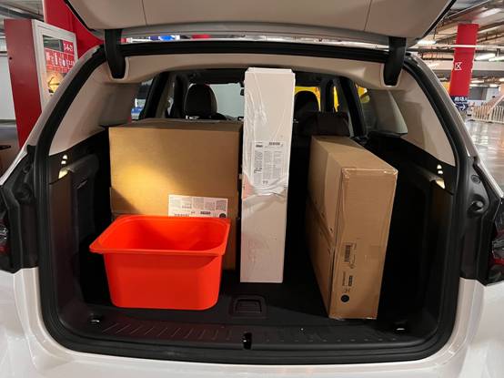 不过装上车还是很轻松的,iX3的后备厢空间有点超乎我的想象,地库旁边一个开金杯等活儿的老师傅还夸两句:这车挺能装!