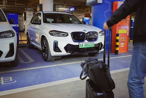 另外,分享个宝马电动车以及燃油车的小福利。就是用MyBMW这个app能以优惠的价格预订宝马专属的停车区,宝马家的油车、电车都能订,而且iX3这种宝马电动车在那儿还能充电,之前我在公司附近的国贸商城停过好几次。前两天,和同事去深圳出差,我又约了个T3航站楼的充电车位。