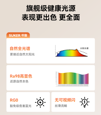 书客摒弃行业噱头,真正回归“光本身”的护眼逻辑,从核心芯片到光学结构,从照度表现到有益红光,对每一处用光细节都实现深度进化。无论是联合美国普瑞定制SunSilkPro™芯片,还是搭载八重光学结构与RRT2.0红光养眼技术,书客Sun2的每一步创新,不为炫技,只为打造一台真正为人眼舒适而生的旗舰护眼大路灯。