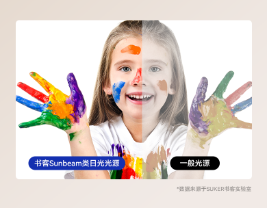 而在光学参数上书客Sun2交出了几乎满分的答卷,它具备Ra≥98的高显色指数,能够99.8%还原自然光下的纸张原色与笔迹细节,助力孩子培养色彩敏感度与创造力;同时频闪深度达到了0.05%,符合医学级“无频闪危害”标准,彻底杜绝视觉疲劳隐患。中心照度更是达到了国AA标准的2.31倍,均匀度提升59%,全方位为孩子提供明亮均匀的照明体验。