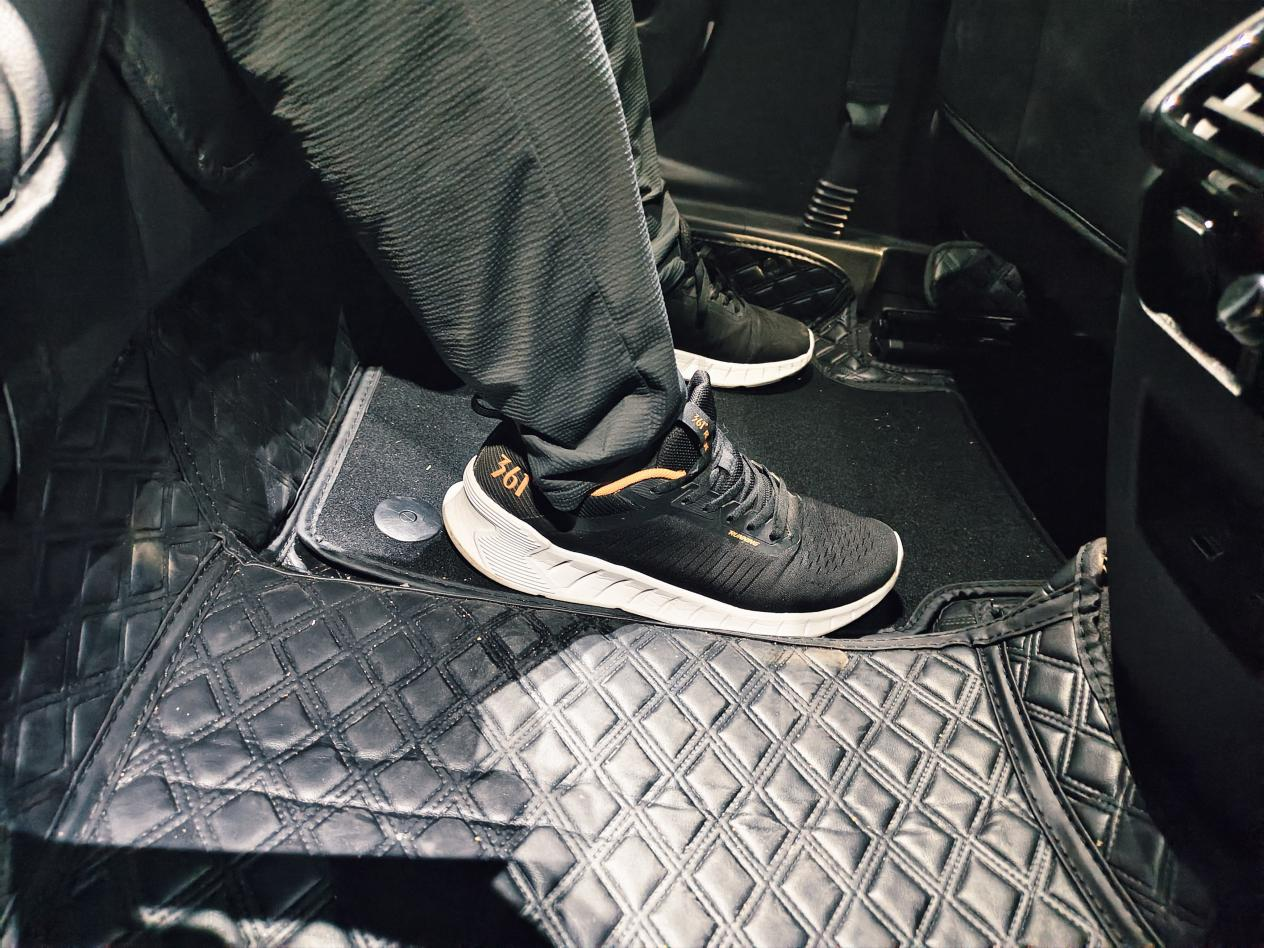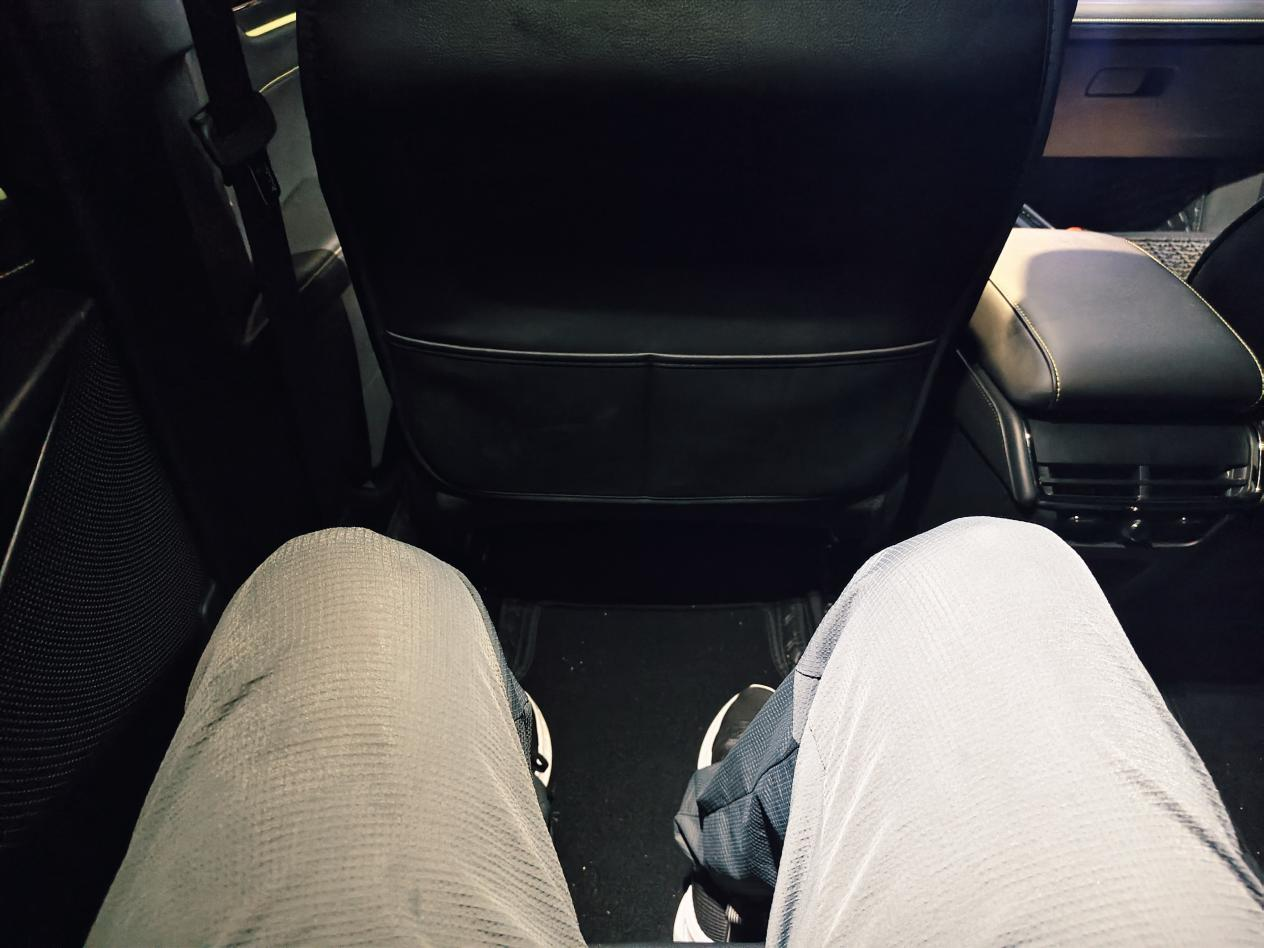 朋友还跑到后排去体验了一下,前排座椅保持开车舒适的位置不动,再到后排坐着,腿部空间依然很充足,而且地台不高,帕萨特那个地台就超级高,中间位置坐着没有蒙迪欧运动版舒服。