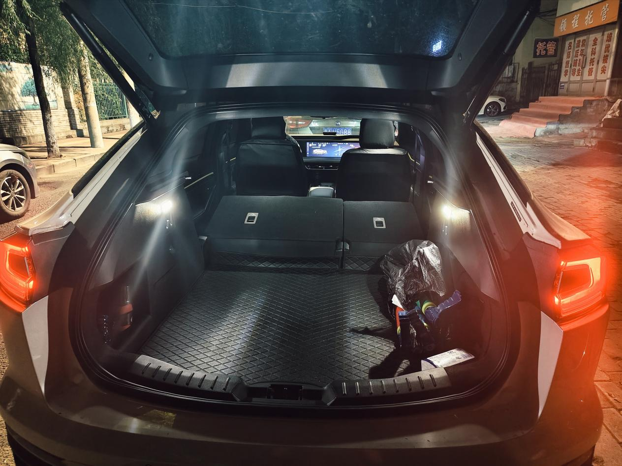 下午5点半,下班时间一到,我拎着包就往停车场冲。先开车去好想来采购路上的吃食,后备箱一打开,空间直接惊到同行的朋友。我们买了两大箱矿泉水、零食大礼包、自热火锅,还有折叠桌椅、露营装备,甚至塞了两个登机箱,后备箱居然还剩不少空间,后排座椅还能放倒扩容,这装载能力完全超出预期,毕竟平时市区通勤,还没机会考验它的“肚量”。