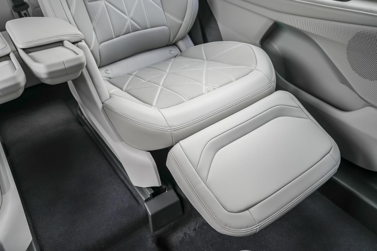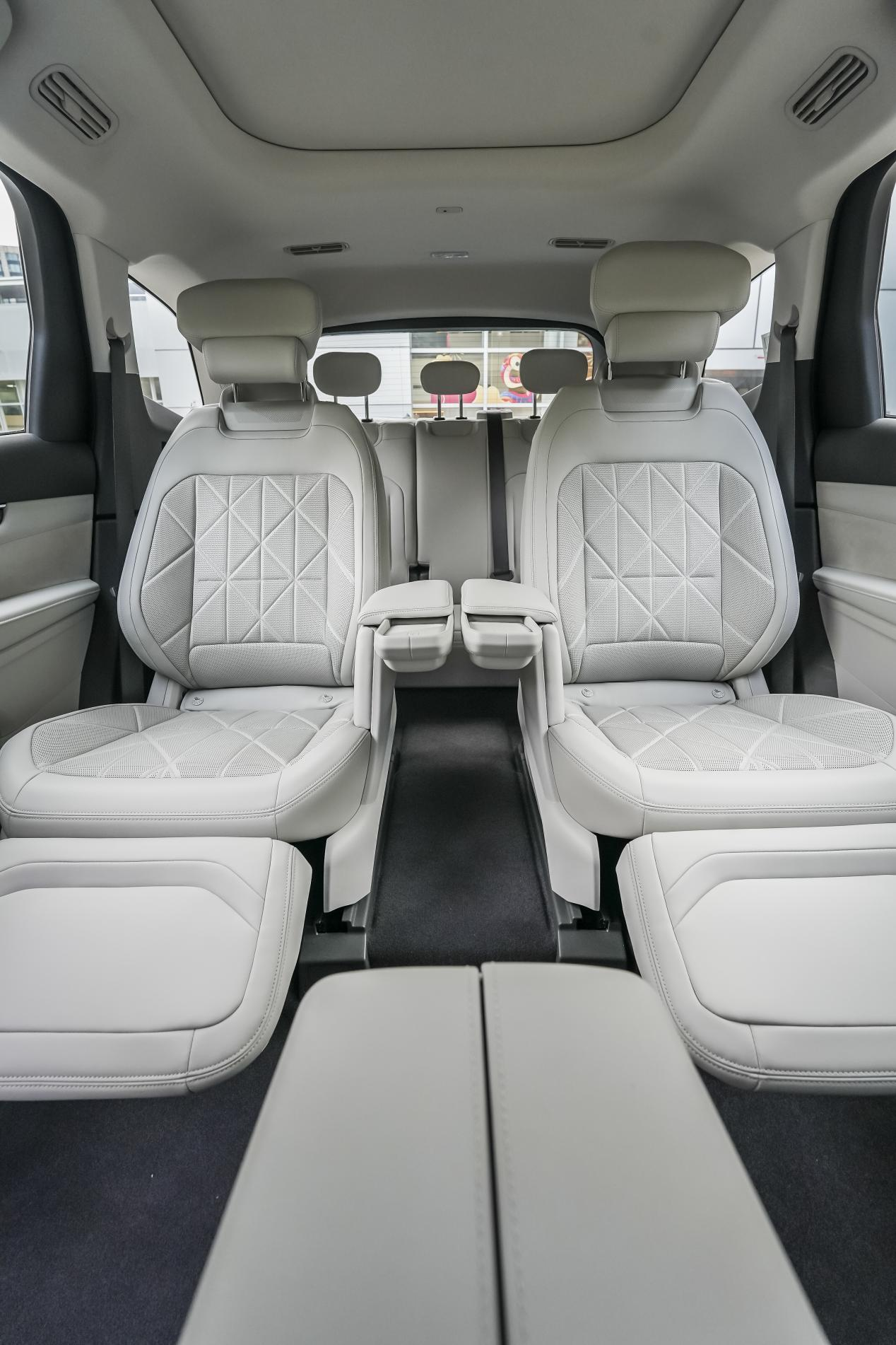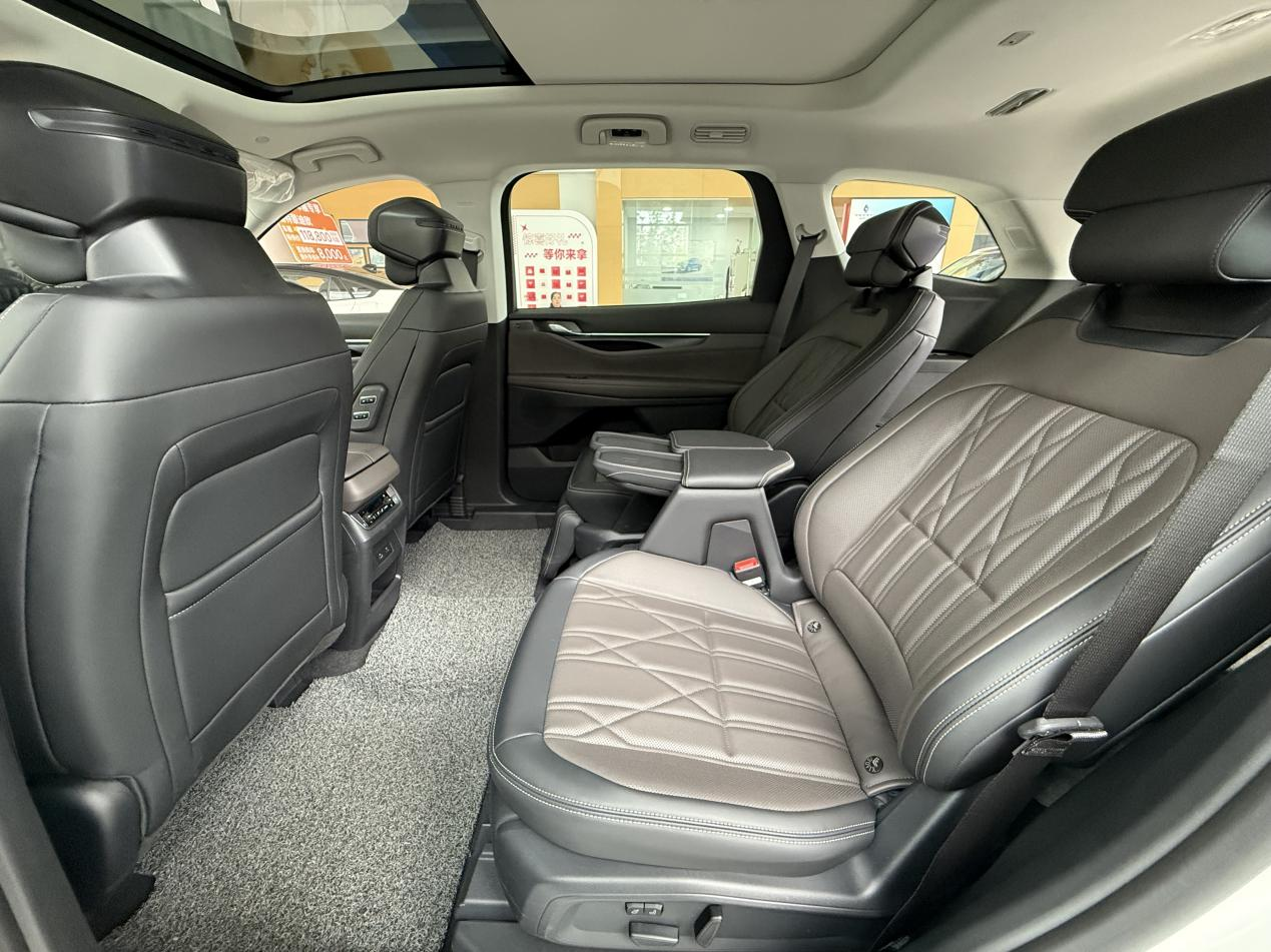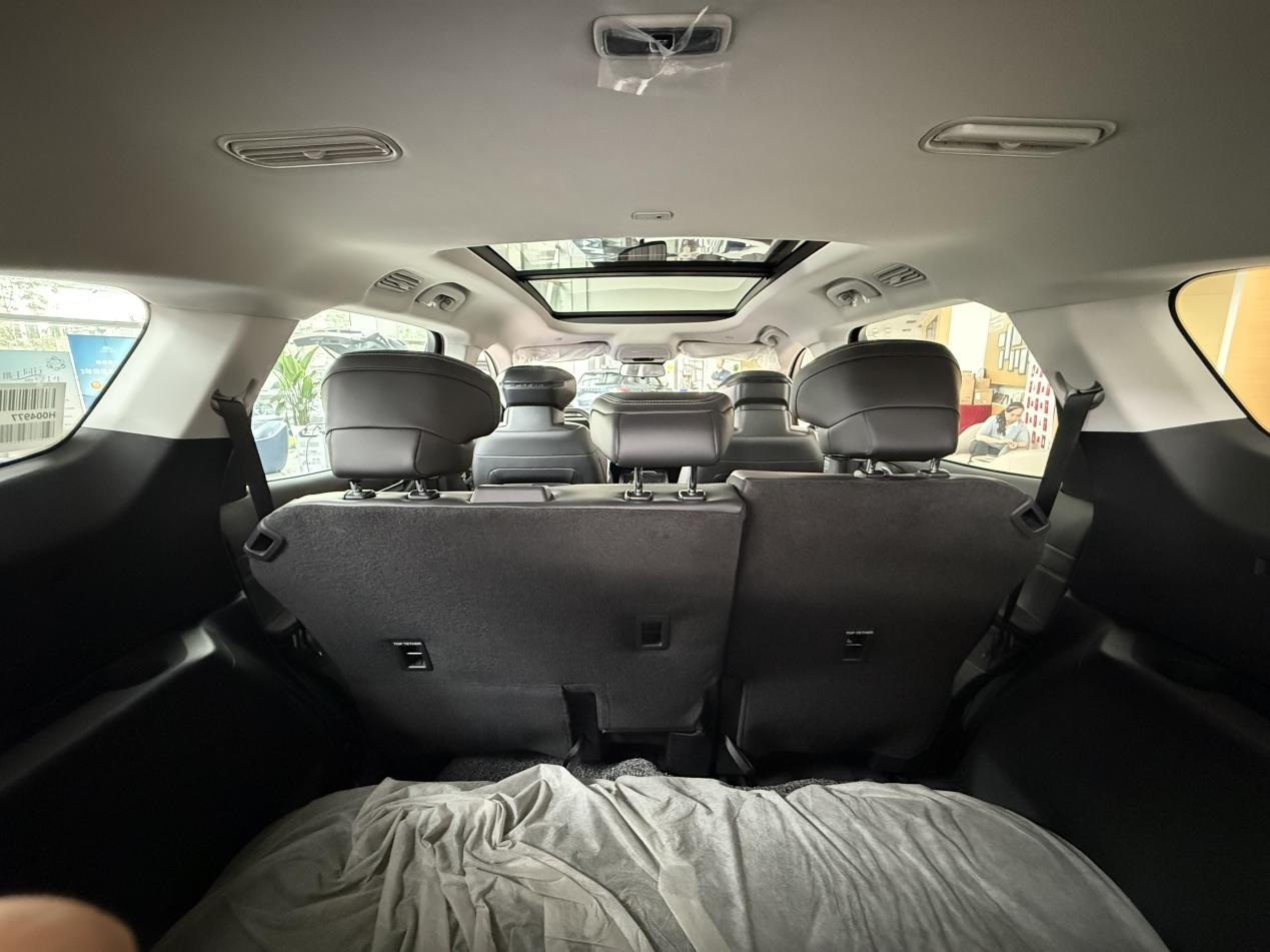 坐进车里,第一感觉是空间真宽敞。我试的这台混动至尊版是2+2+3的七座布局,第二排独立座椅像坐MPV一样舒服。