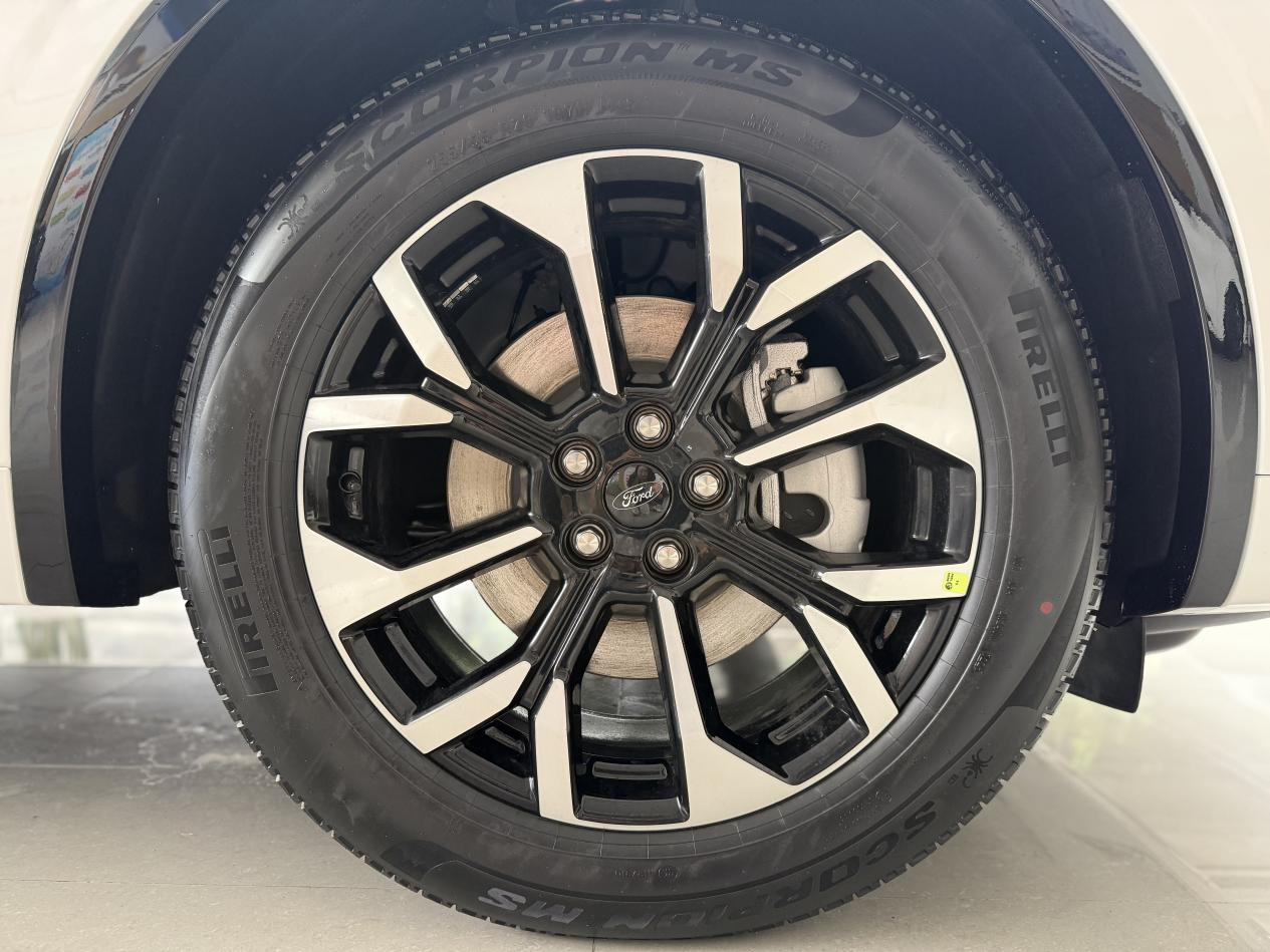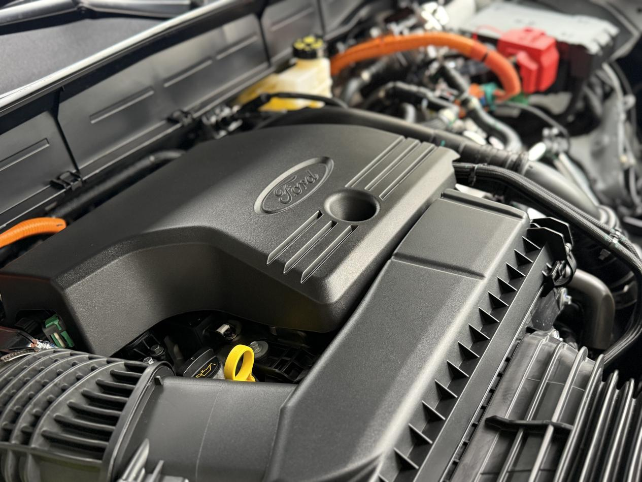 试驾的车型是混动版的,动力系统是2.0T大马力混动,最大功率275马力,数据上看很强。实际开起来,起步轻快,电机辅助让低速响应很跟脚,完全没有开大车的笨重感。中后段加速底气足,高速超车不费劲。底盘调校偏舒适,过滤颠簸干净利落,过弯时支撑性也不错,福特这点一直做得挺好。