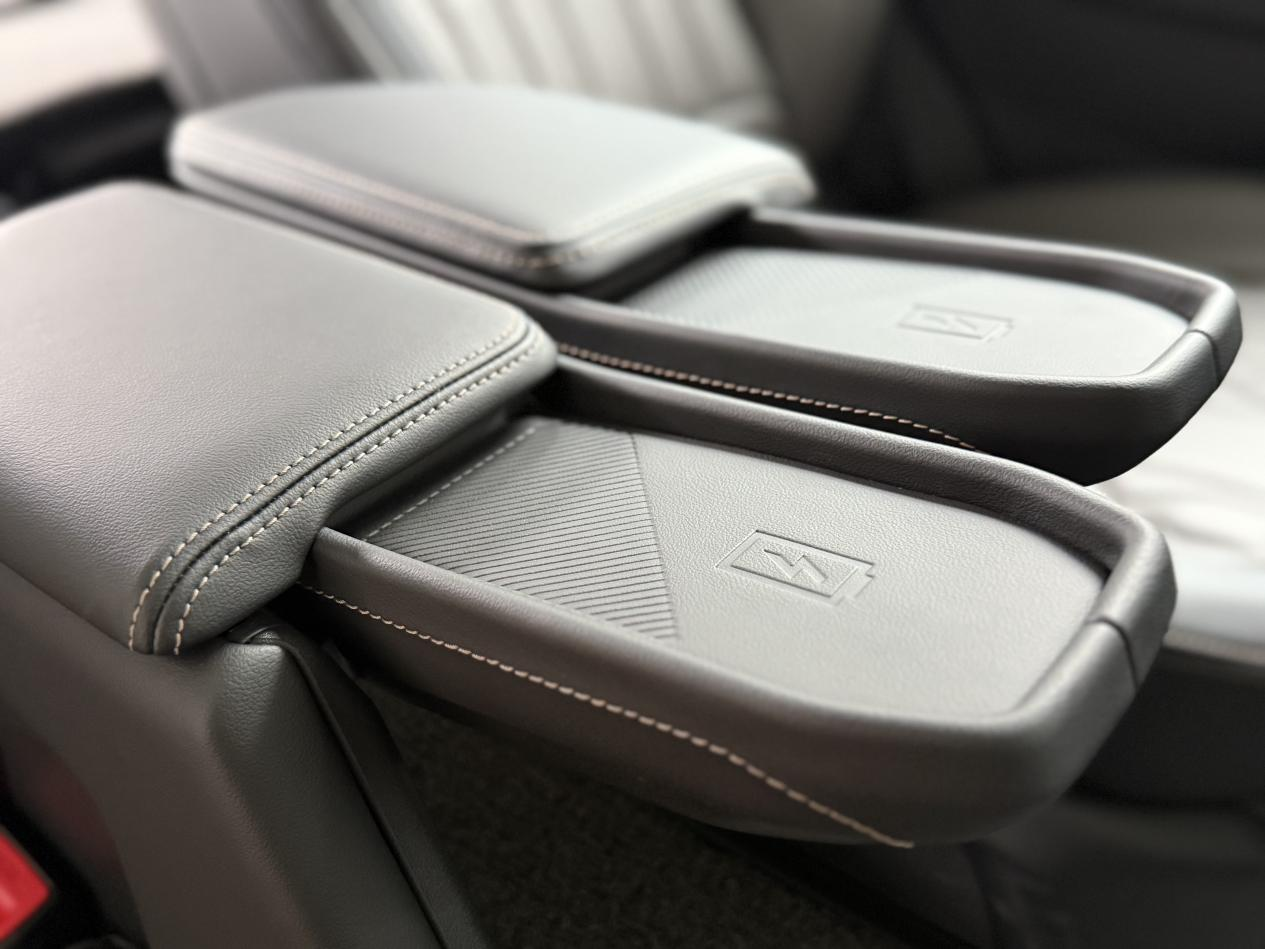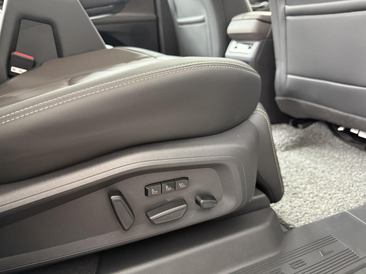 中控台那块27英寸的大联屏很抢眼,显示清晰度不错,看着挺有科技感的。销售说,新款新增了方向盘加热在冬天挺实用,寒冬开车不用冻手了。另一个新增的陡坡自动开启540透明底盘功能,销售在试驾的时候演示了一下:在陡坡或窄路时,系统会自动开启全景影像,底盘下的路况也能看清,对新手或者复杂路况挺友好。