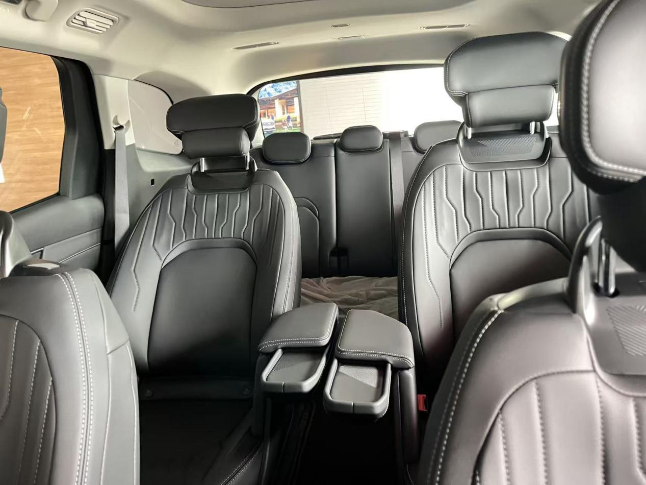 我最满意的是它的座椅布局,是2-2-3的七座设计。这意味着第二排是两个独立的“老板椅”,中间留了过道。销售说这种布局现在挺受欢迎,进出第三排方便多了,不用像传统2-3-2布局那样还得翻折第二排座椅。我亲自到第三排试了试,以我1米77的个子,短途乘坐没问题,不像某些七座SUV的第三排纯粹是摆设。后备箱在七座状态下还能放下几个登机箱,算是及格了。