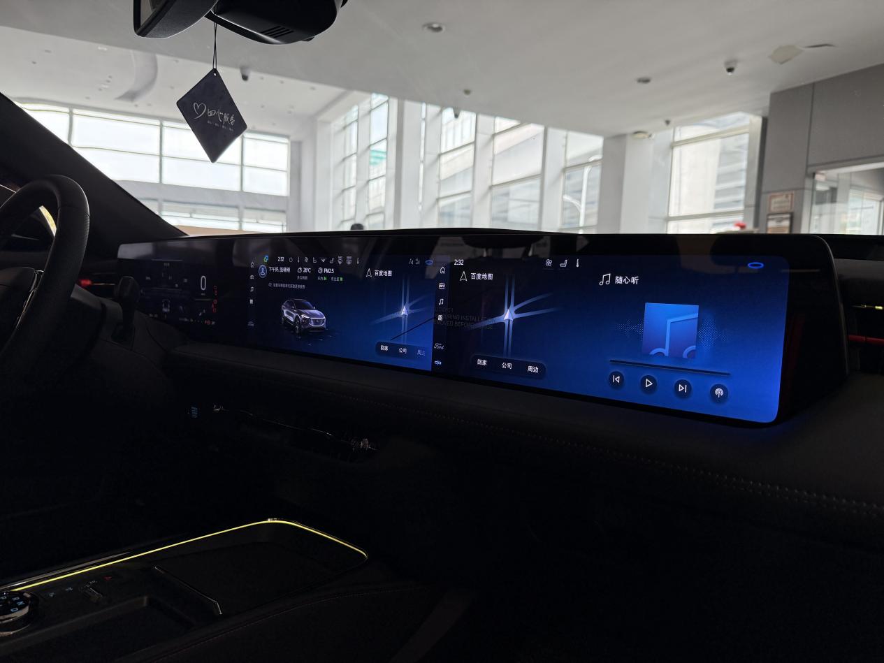 坐进车里,1.1米连体大屏简直是视觉焦点,从主驾延伸到了副驾,导航很清晰,最实用的是这一块大屏幕能分屏用,主驾看导航的同时,副驾可以刷视频或者追剧,一屏两用,特别是长途开车的时候,应该很实用,副驾不无聊,也不耽误主驾看导航。
