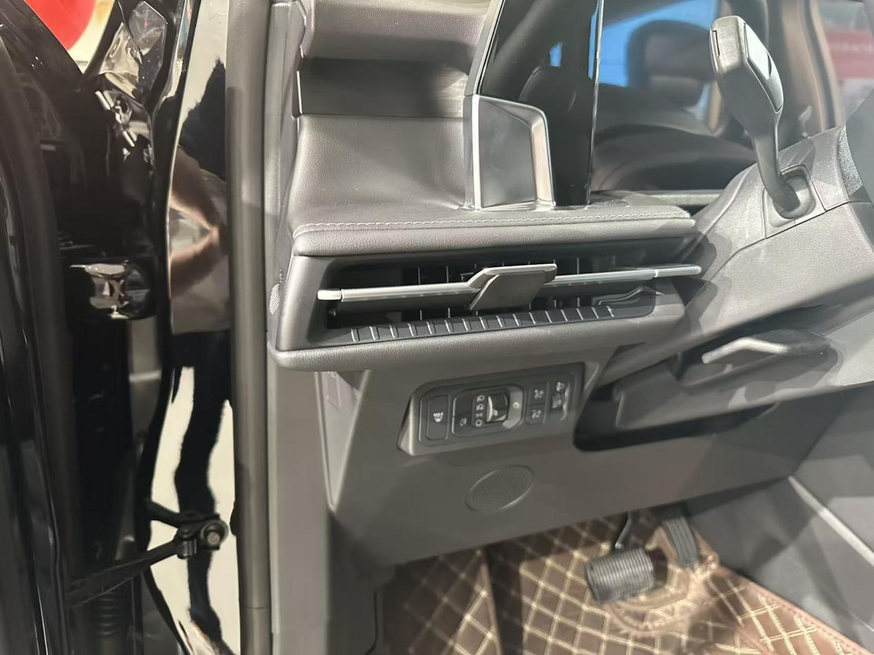 一进店里,就看到主角停在最显眼的位置,是一辆26款的混动四驱至尊版,也就是次顶配。颜色是那种沉稳的黑色,在灯光下质感不错。外观上和老款变化不大,依旧是那种美式SUV的霸气范儿,高大威猛,看着就让人觉得踏实。销售小哥热情地迎上来,确认了我们的来意后,直接开门见山,说了相比老款增加了的一些配置,像方向盘加热,我们这边冬天不算特别冷,但早上上车摸到冰凉的方向盘也是种折磨,这功能对家人很友好。540度透明底盘对这么个大车来说,在窄路会车或者走烂路时,绝对是提升安全感的配置。