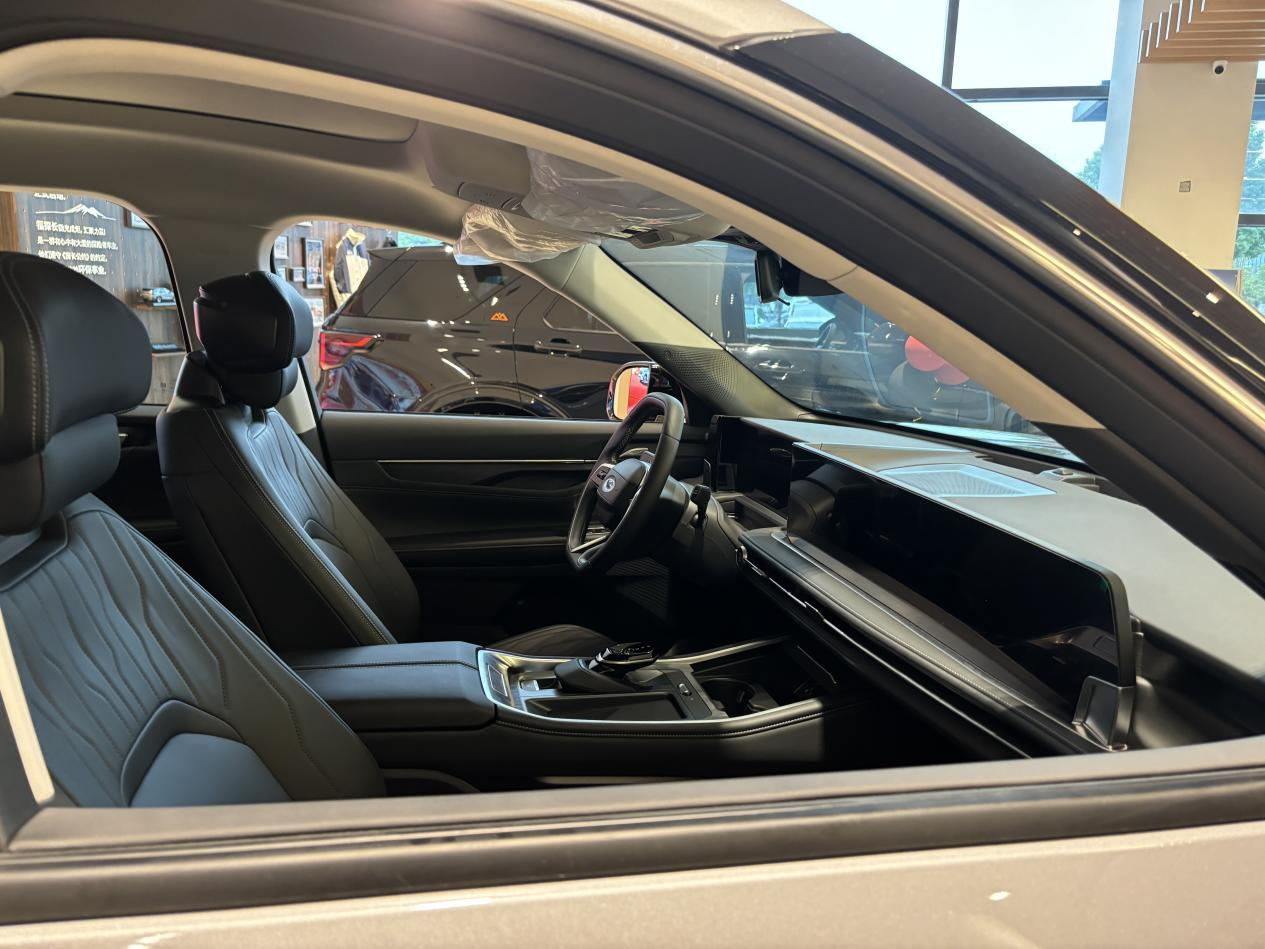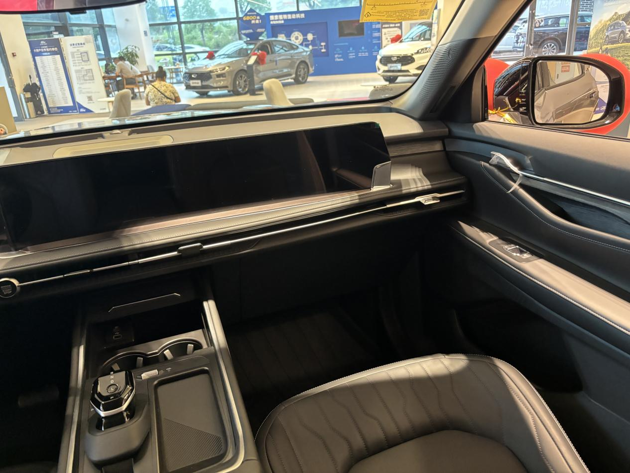 聊到高配,销售重点推荐了混动旗舰型。他说座椅升级成了半苯胺真皮(据说劳斯莱斯、宾利这类豪车才用),手感确实细腻,还带加热通风。另外HUD抬头显示、方向盘加热这些也配齐了。不过价格得上到30万左右了,果然一分钱一分货啊。