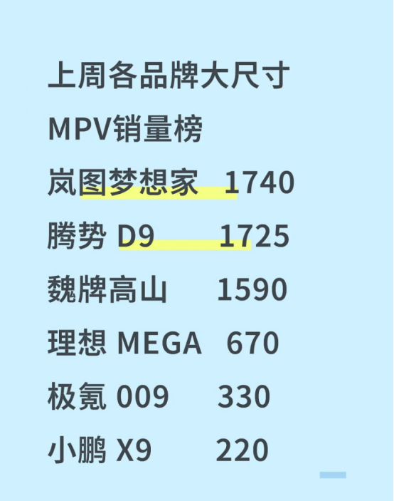 看到梦想家上个月卖了6510台,拿下新能源MPV销冠,然后9月的最新一周以多15台的价格又拿下第一,我忍不住想出来说两句。说实话,这个成绩我一点不意外,终于大家也都发现梦想家的好了。