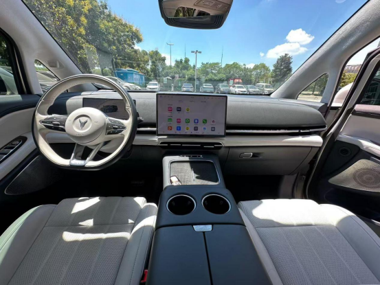 儿子一上车就爬到了第三排,把那里当成了他的专属领地。我用电视给他放动画片看,他这一路上也不吵不闹的。老婆则把副驾变成了她的临时化妆间,她说座椅通风让她化妆时后背不出汗,而且前面的储物格刚好能放下她的化妆品。