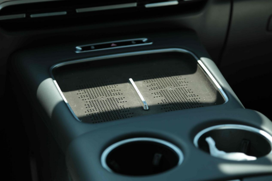 其次,空调面板区域采用触控面板,操作简单直接。在空调系统下方设置了无线充电功能,这个设计非常贴心。