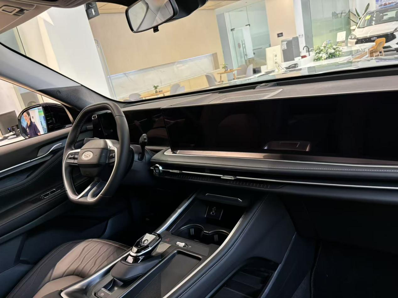 光看不练假把式,肯定得开起来试试。试驾车找销售开了辆燃油版的,用的2.0T发动机。这动力,确实猛,油门踩下去,提速很快,超车很有信心,一点不拖沓,完全不像在开一个这么大块头的车。开起来之后,底盘给我的感觉很好,很扎实,过个减速带或者坑洼路面,那种滤震感觉很高级,“咚咚”两下就过去了,没有多余的晃动,车身也很稳,不飘。