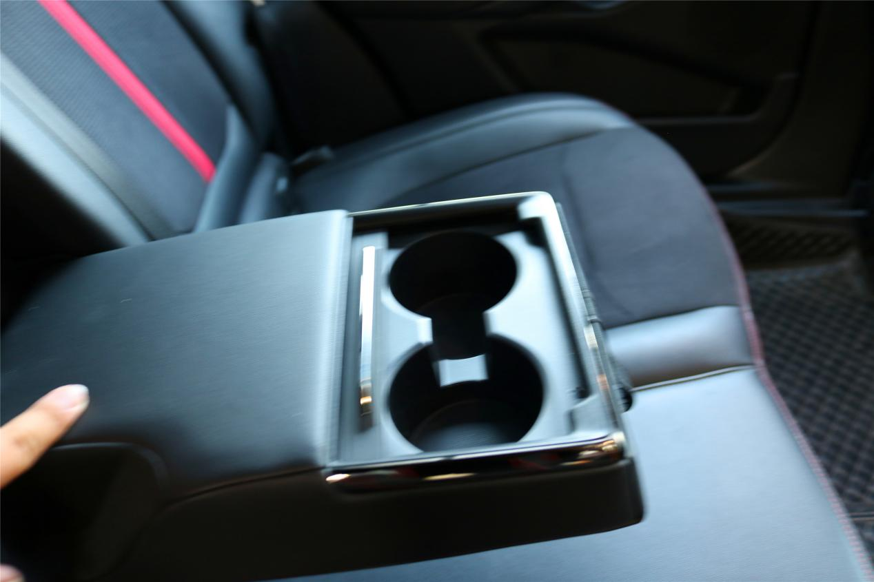 后排扶手也蛮实用,放水杯方便,设计了盖板,拉过来就能放手机,灵活度很高