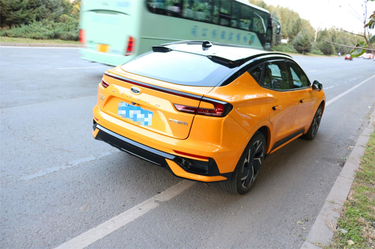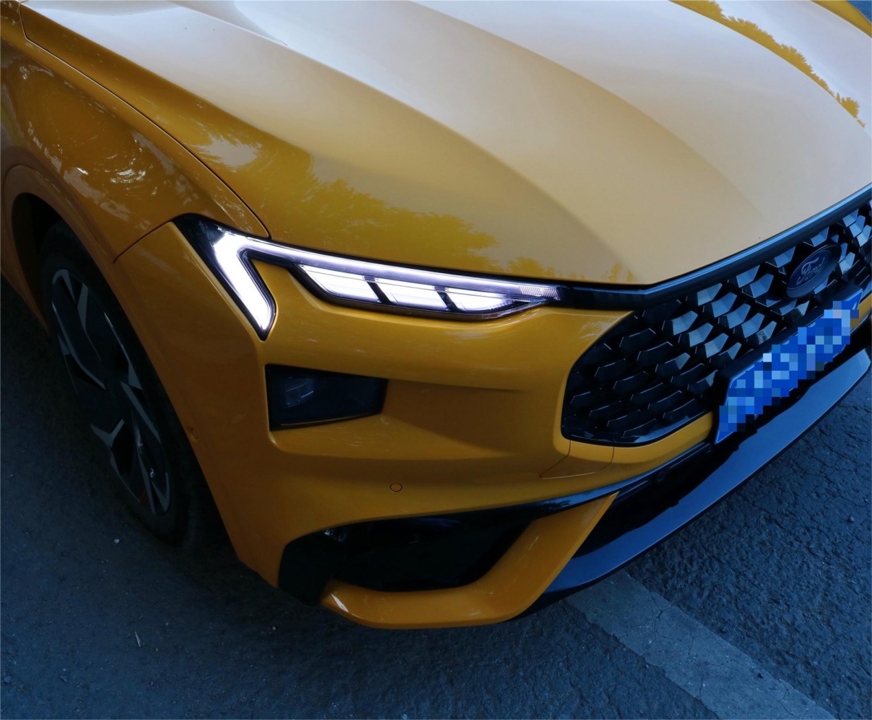 后来去福特4S店,进去就被一辆橙色的车给勾住了,就是我现在的蒙迪欧运动版 ST-Line,车身颜色叫“啸日橙”,阳光下像裹了层蜜蜡,亮度特别高,跟周围的黑、白、灰车比,简直是“显眼包”本包。走近一看,运动套件直接拉满:大尺寸的熏黑进气格栅,搭配犀利的LED大灯;侧面的溜背造型特别流畅,20英寸的熏黑轮毂更是戳中我的心巴;尾部的贯穿式尾灯晚上点亮后辨识度超高。