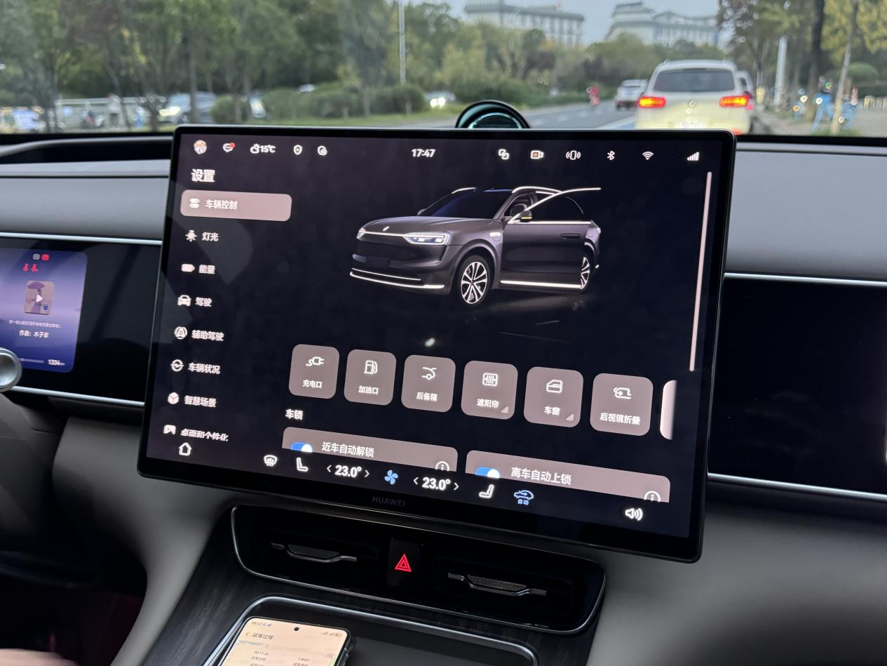 坐进车里,首先映入眼帘的就是这个极窄边框的,超大中控屏,画面特别细腻,操作起来跟平板电脑一样顺滑。我平时开车用它导航,路况显示清晰。而且切换应用这些的时候反应也都挺快。副驾还有个十来英寸的屏幕,是我老婆的最爱,她上车就看剧,丝毫不会觉得无聊了。