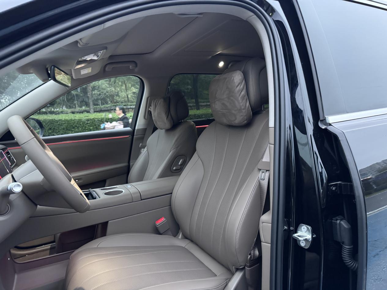 座椅的话,主驾那个零重力座椅挺舒服,有时候开长途累了,找个安全的地方停下,调成全躺模式,腿托也能伸开,能稍微歇会儿。副驾的座椅有按摩功能,通风和加热功能也很实用,我老婆经常一上车就把按摩安排起,这天冷了再把加热开着,说比飞机头等舱还安逸。