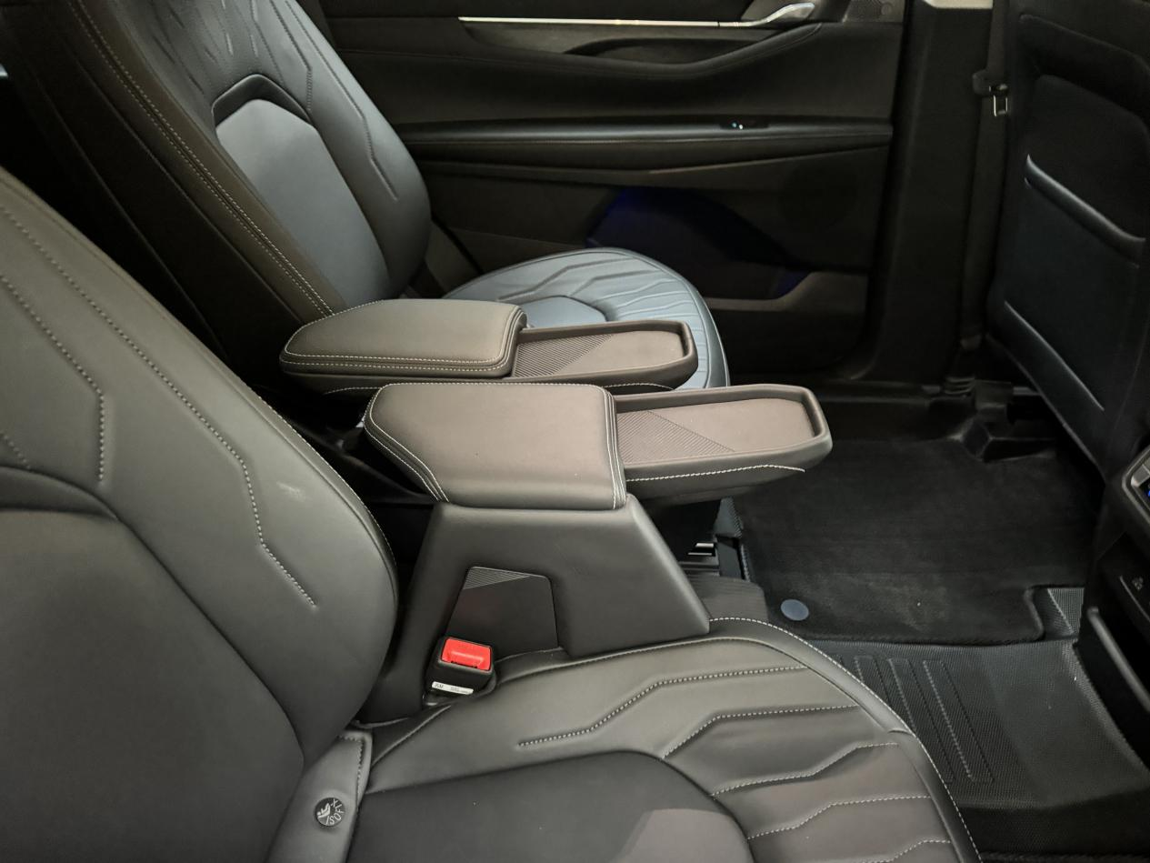 我倒是更看重实用性的,毕竟买这种大七座SUV主要还是为了全家出行方便。锐界L的空间确实没得说,五米的车长,三排座位都能正常坐成年人,不像有些七座车第三排只能应急。我特别满意它的223座椅布局,第二排是两个独立座椅,带扶手的那种,坐起来跟MPV似的特别舒服,而且中间留了过道,进出第三排不用折腾座椅,这个设计真的很人性化。