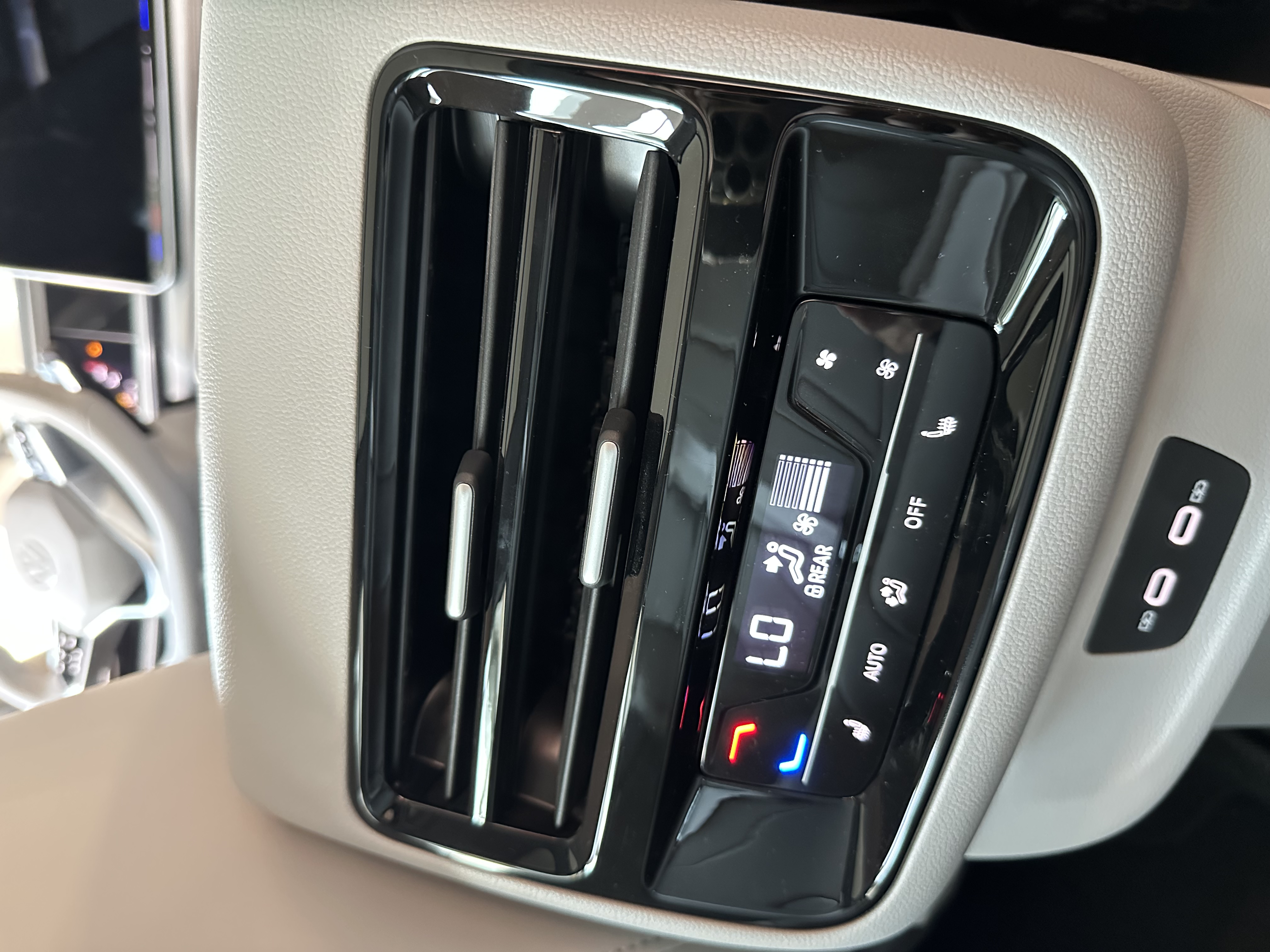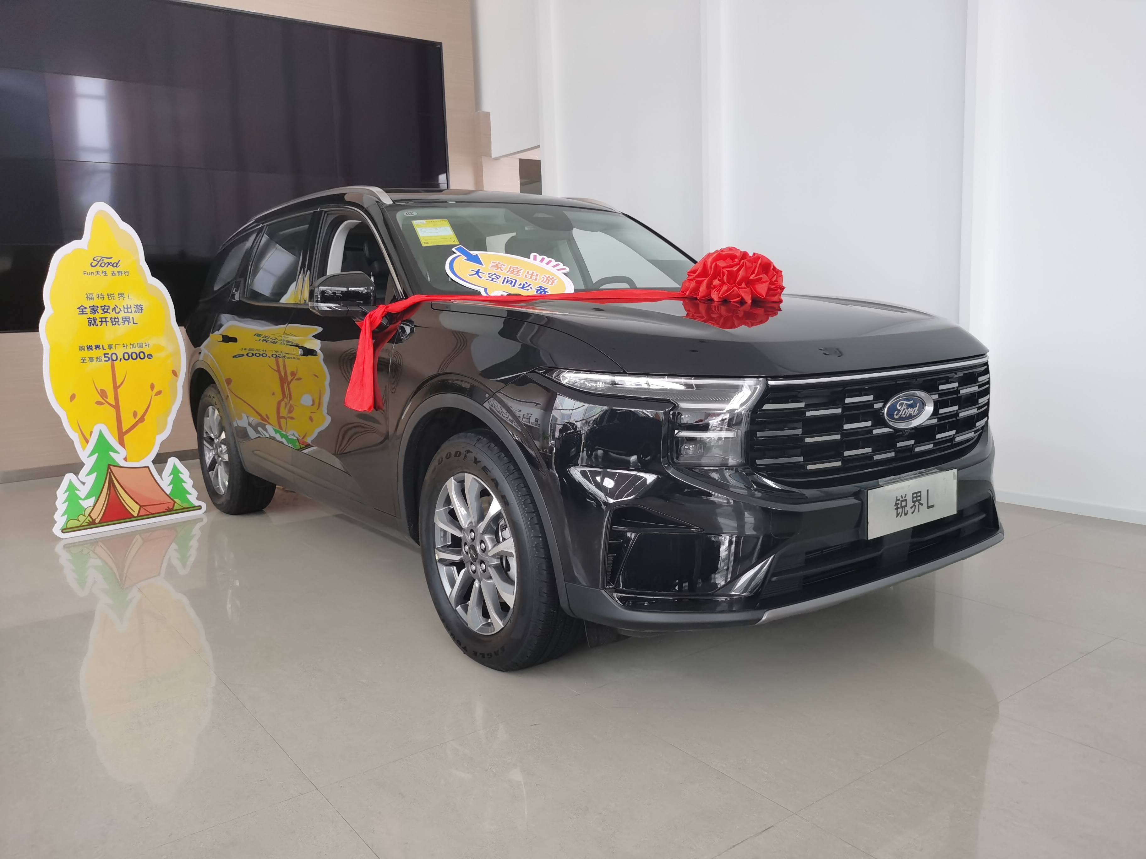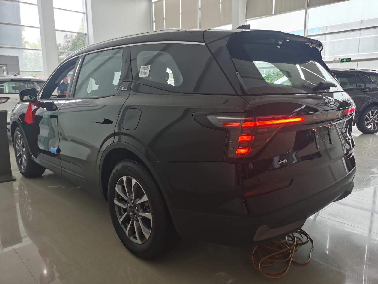 从丰田出来,我们紧接着去了福特,看了锐界L混动。这车第一眼感觉比汉兰达要年轻一些。空间表现上和汉兰达大差不差,前两排都很宽敞。它有一个亮点是提供了2+2+3的座椅布局可选,第二排是两个独立的座椅。我们实际坐上去感受了一下,包裹性和支撑性都挺好,腿托升起来,靠背放倒一些,还真有点那种“零重力座椅”的意思,长途乘坐应该会比较舒服。
