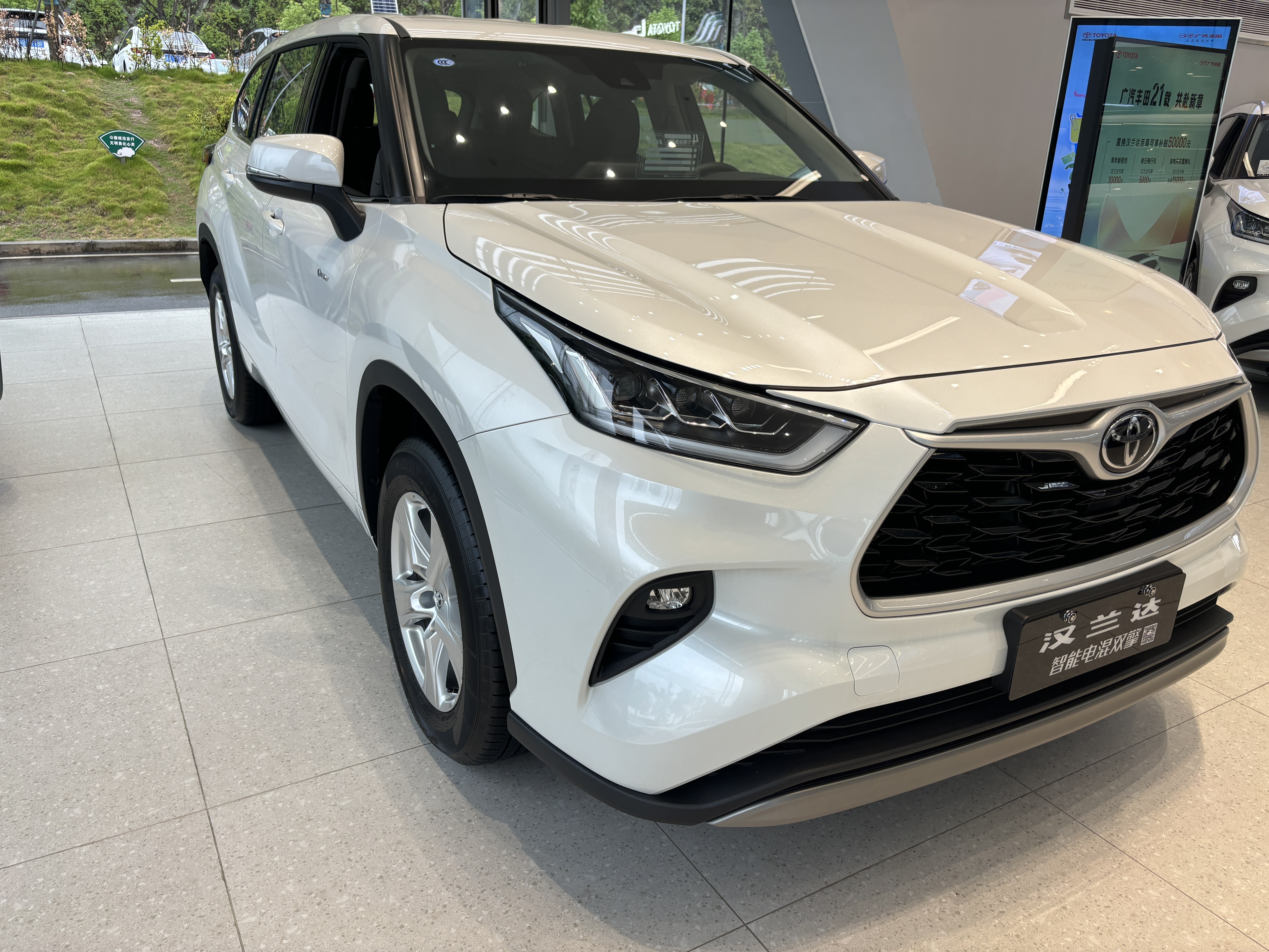 我们先去看的丰田汉兰达。这车名气还行,路上跑得也多,算是这个级别的老将了。外观嘛,就是很典型的丰田风格,说不出什么惊艳的设计,但看着挺稳重、顺眼,属于那种不容易过时的类型。发小对这点倒是不排斥,觉得家用车这样就挺好。