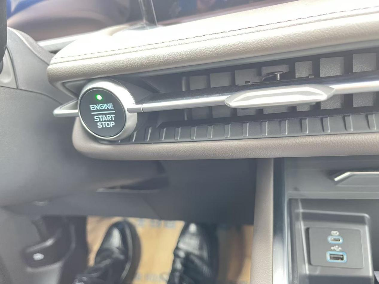 坐进车里,第一感觉就是空间大。2+2+3的七座布局,第二排独立座椅,中间有200mm的通道,进出第三排特别方便。我试坐了一下,感觉第二排座椅的包裹性还可以,坐起来不硬。表弟试坐后说,比汉兰达舒服多了,特别是有座椅加热和通风功能。