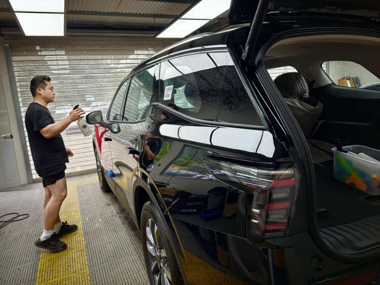 提了车出来第一件事,你们猜是干嘛?没错,就是直奔他们合作的贴膜店,把送的玻璃膜给贴了。4S店送的,说是隐私膜,免费的嘛,我当时也没抱太高期望,寻思着先用着,不行以后再换。不过贴完感觉效果还挺不错的,从外面看里面隐私性确实好了很多,里面看外面也挺清晰的,不影响视线,感觉这波不亏。