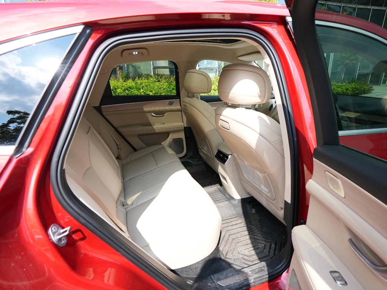 作为家用车,它的空间表现必须夸一夸。我身高差不多180cm,中等身材,调整主驾座椅时,座椅前后调节范围很够,我把座椅拉到适合自己的驾驶距离后,头部离车顶能有一拳多空间,就算戴着帽子也不会顶头。后排腿部也有两拳多距离,周末带爸妈和孩子出行,三个人坐后排也不挤。