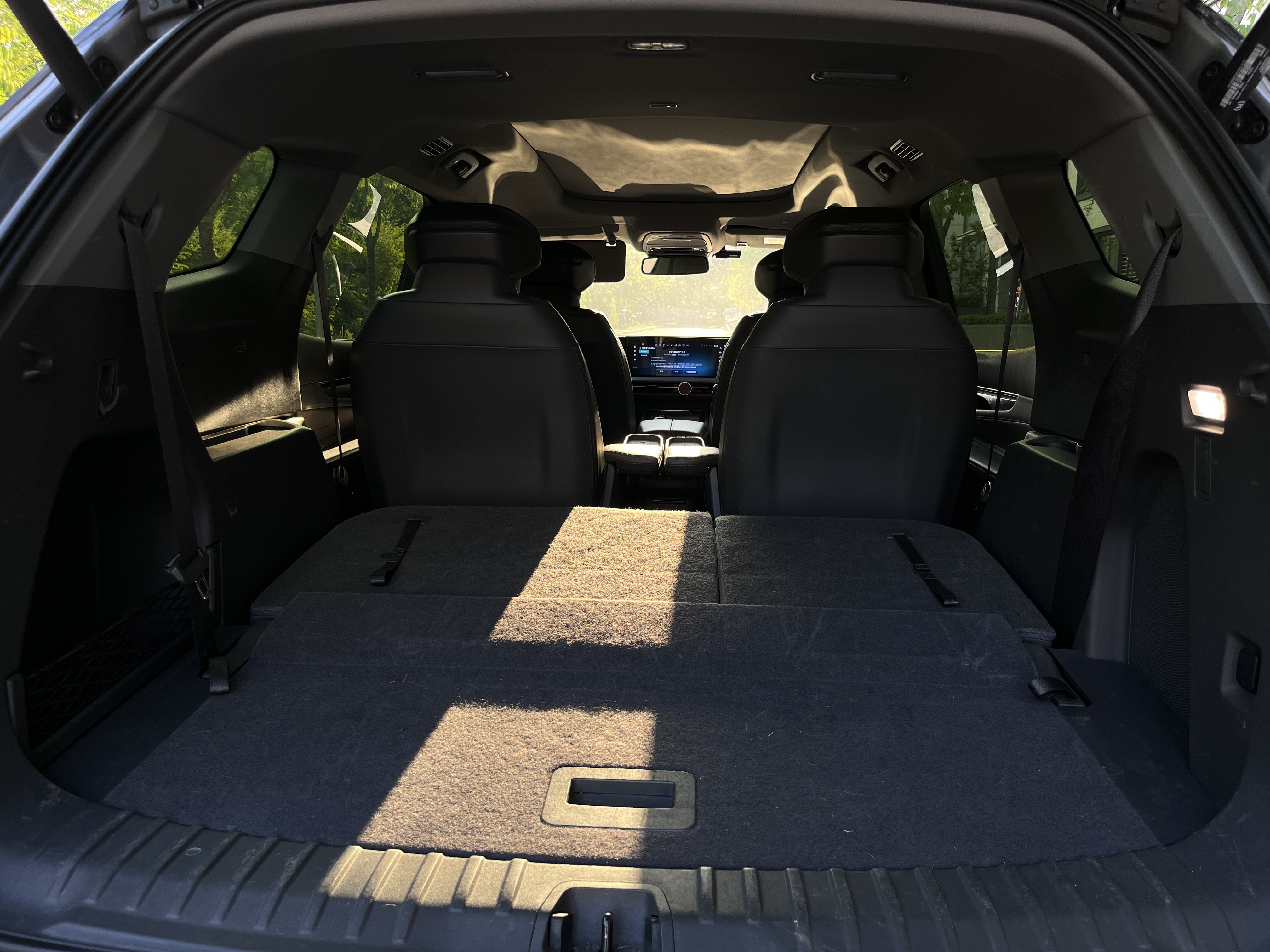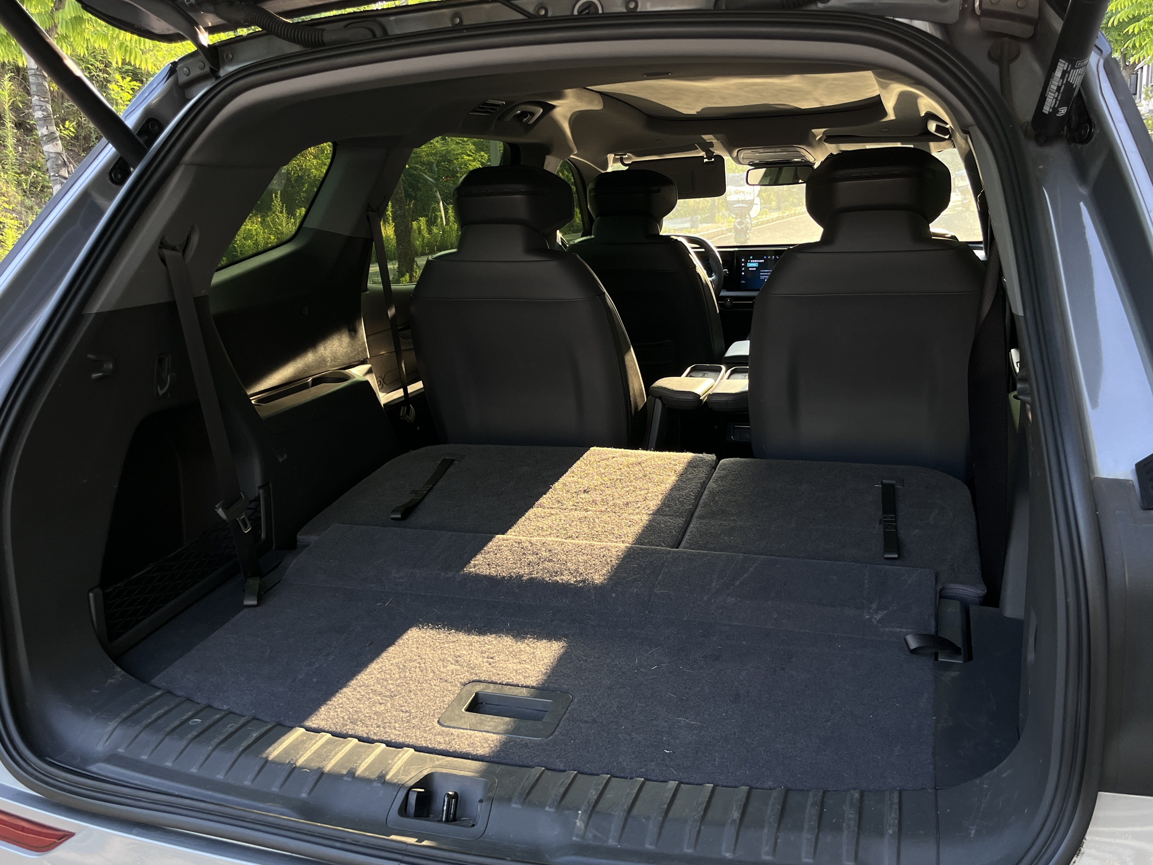 而且进出第三排特别方便,直接从中间过道走过去,不用折腾前排座椅。第三排我试过,正常体型的成年人短途坐完全没问题,不像有些车的第三排纯粹是摆设。平时如果不需要坐那么多人,第三排放倒后后备箱特别能装,孩子的自行车、露营装备甚至小推车都能轻松塞进去。