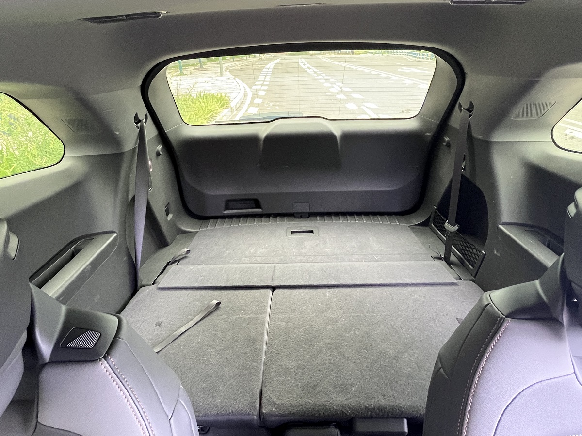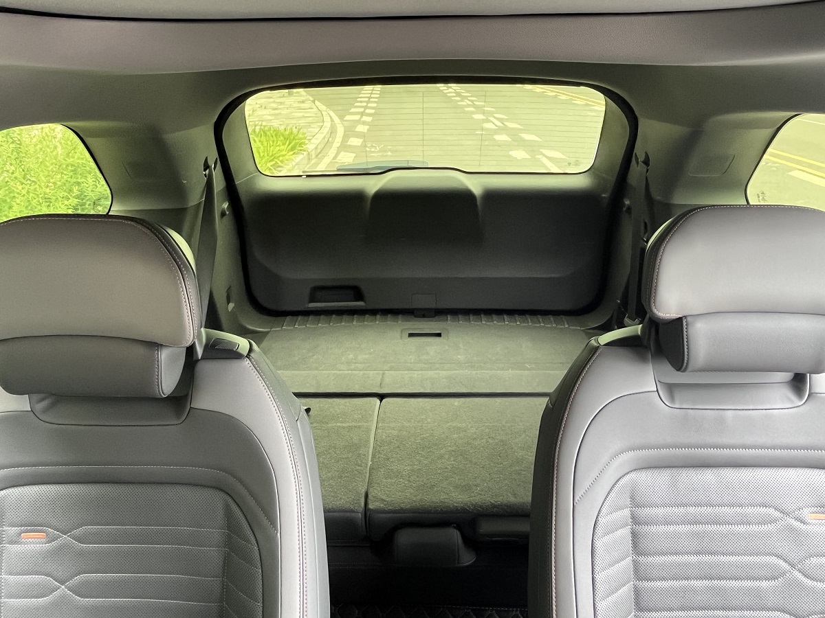 孩子呢,最喜欢第三排了。223布局的好处就是,进出第三排特别方便。中央那个过道很宽,他直接从第二排中间就钻到后面自己的专属领地去了,不用我们再费力去翻折座椅。他自己在后面,放着他的小玩具和绘本,自得其乐。要是只有我们三口之家出门,第三排座椅放倒,那个后备箱空间,大的夸张,孩子的自行车、我的钓具都能轻松塞进去。今天带的帐篷、折叠桌椅、零食箱和保温箱,都只占了后备箱一小半地方,感觉再装一套烧烤架都绰绰有余。这种空间上的从容,让出门少了很多后勤上的焦虑。