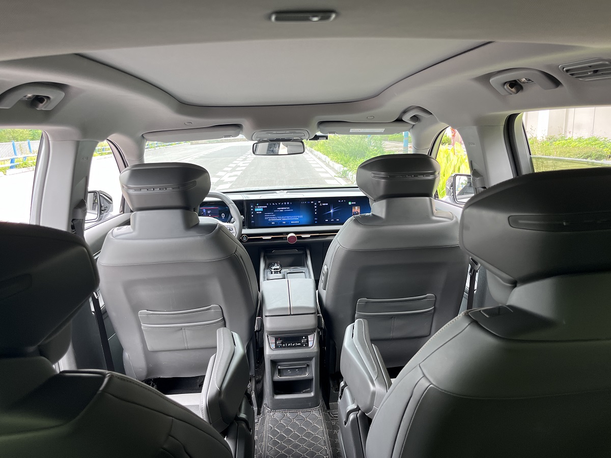 夕阳西下,收拾东西准备回家。回程我让老婆开,我坐到第二排体验了一下。独立座椅的包裹性和支撑性确实不错,腿托抬起来一点,半躺着,非常放松。透过巨大的全景天窗看着天空慢慢变暗,星星隐约出现,这种感觉,在城市的钢筋水泥里是感受不到的。