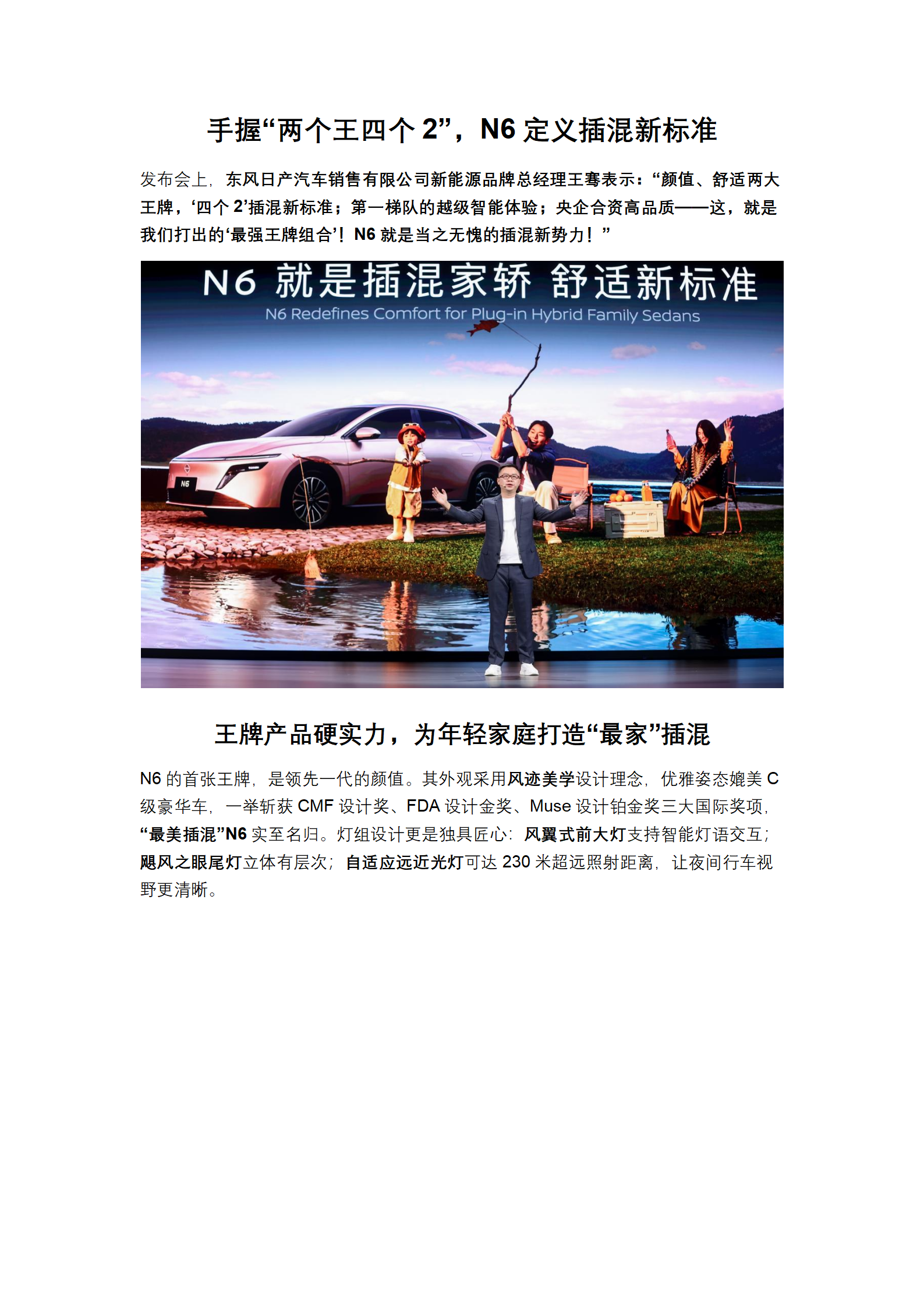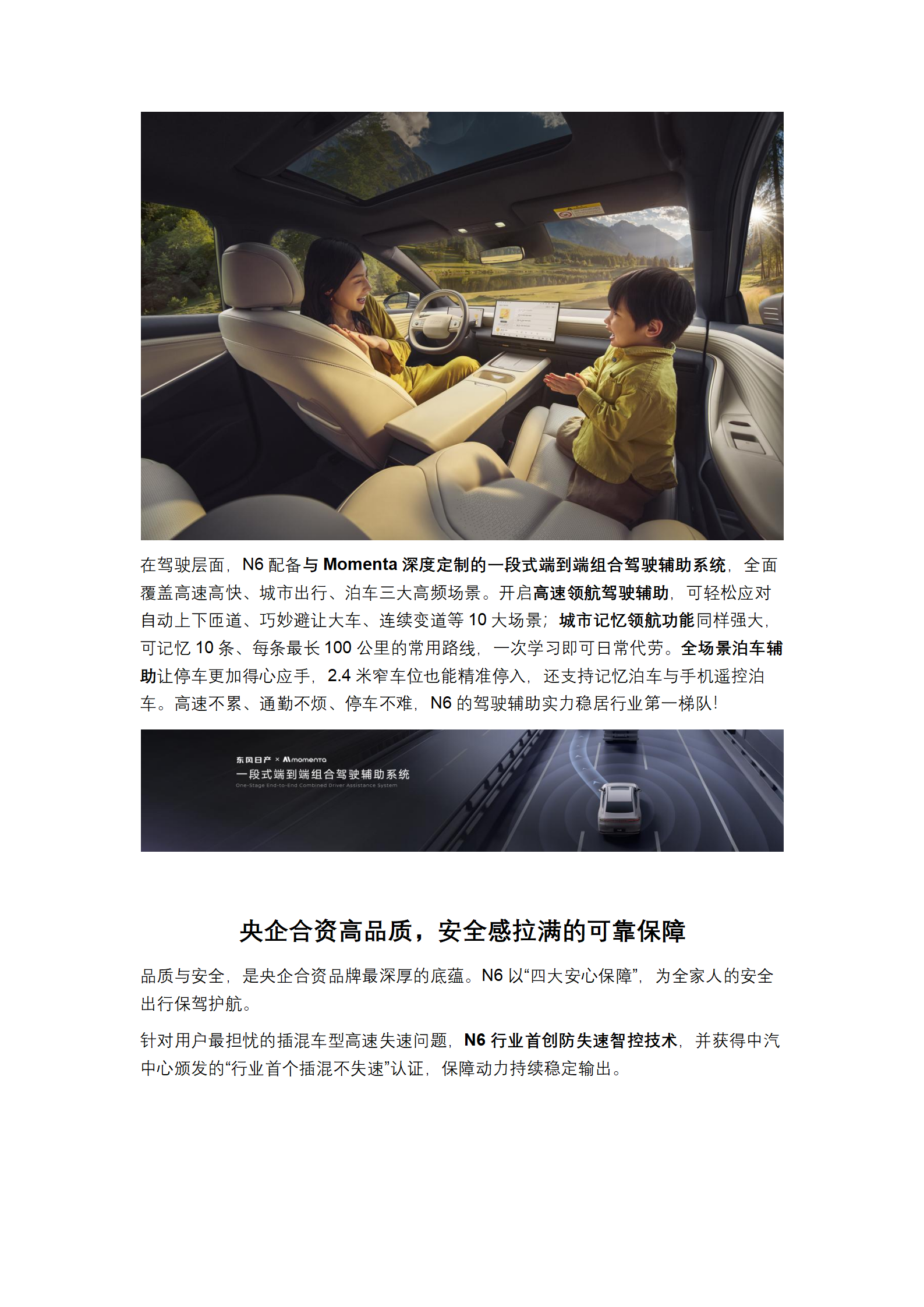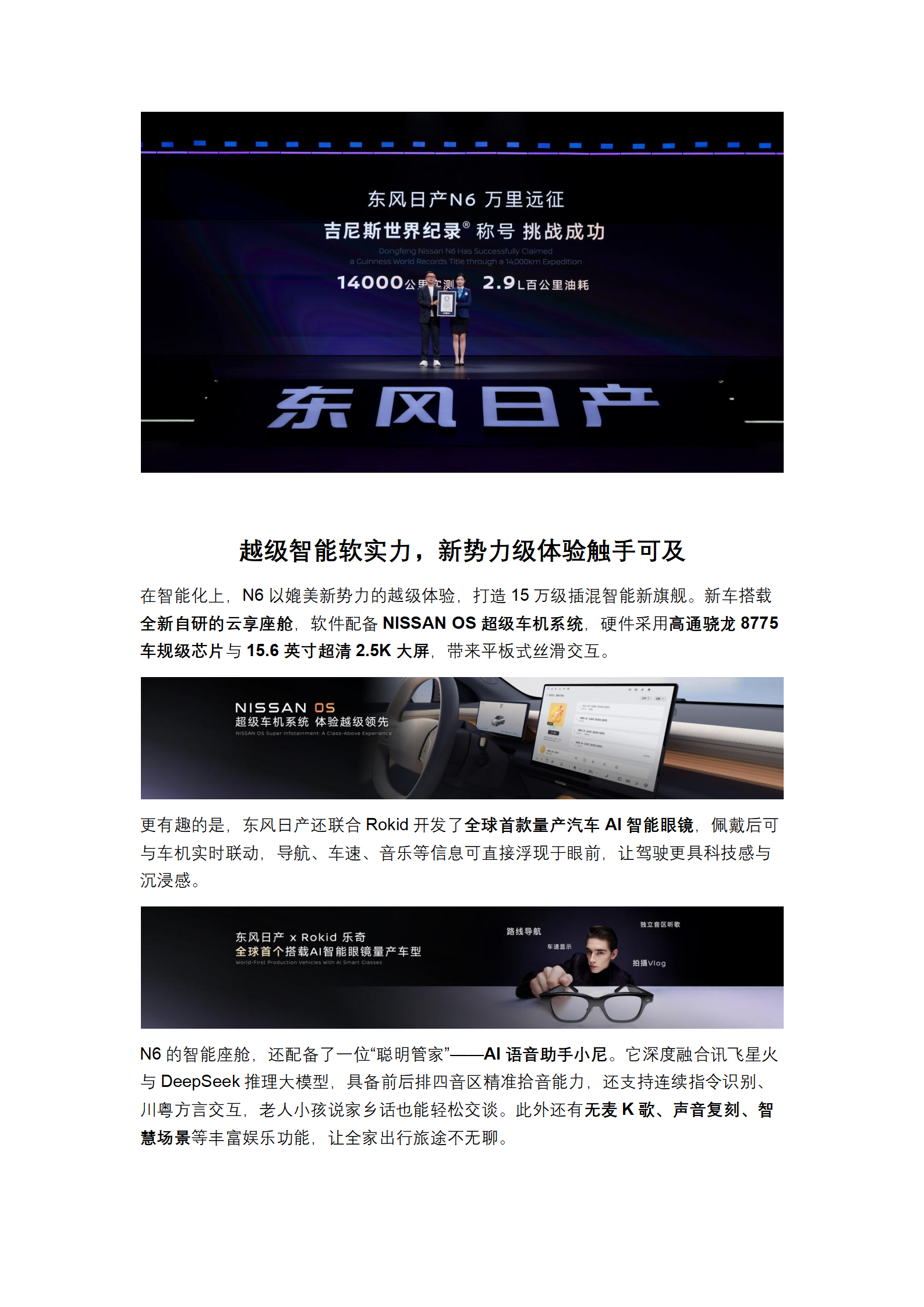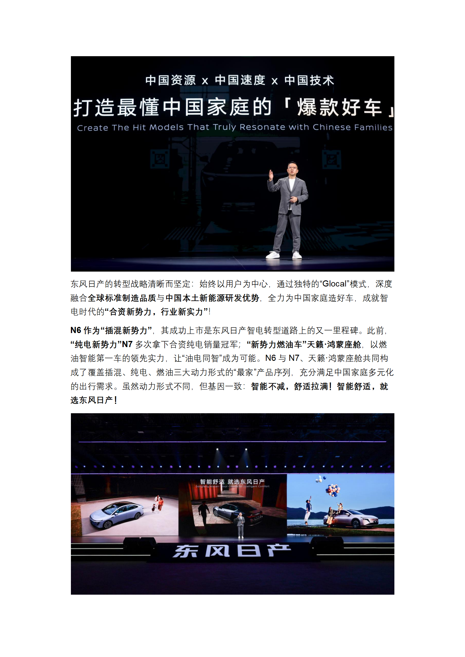油智能第一车的领先实力,让“油电同智”成为可能。N6与N7、天籁·鸿蒙座舱共同构成了覆盖插混、纯电、燃油三大动力形式的“最家”产品序列,充分满足中国家庭多元化的出行需求。虽然动力形式不同,但基因一致:智能不减,舒适拉满!智能舒适,就选东风日产!
