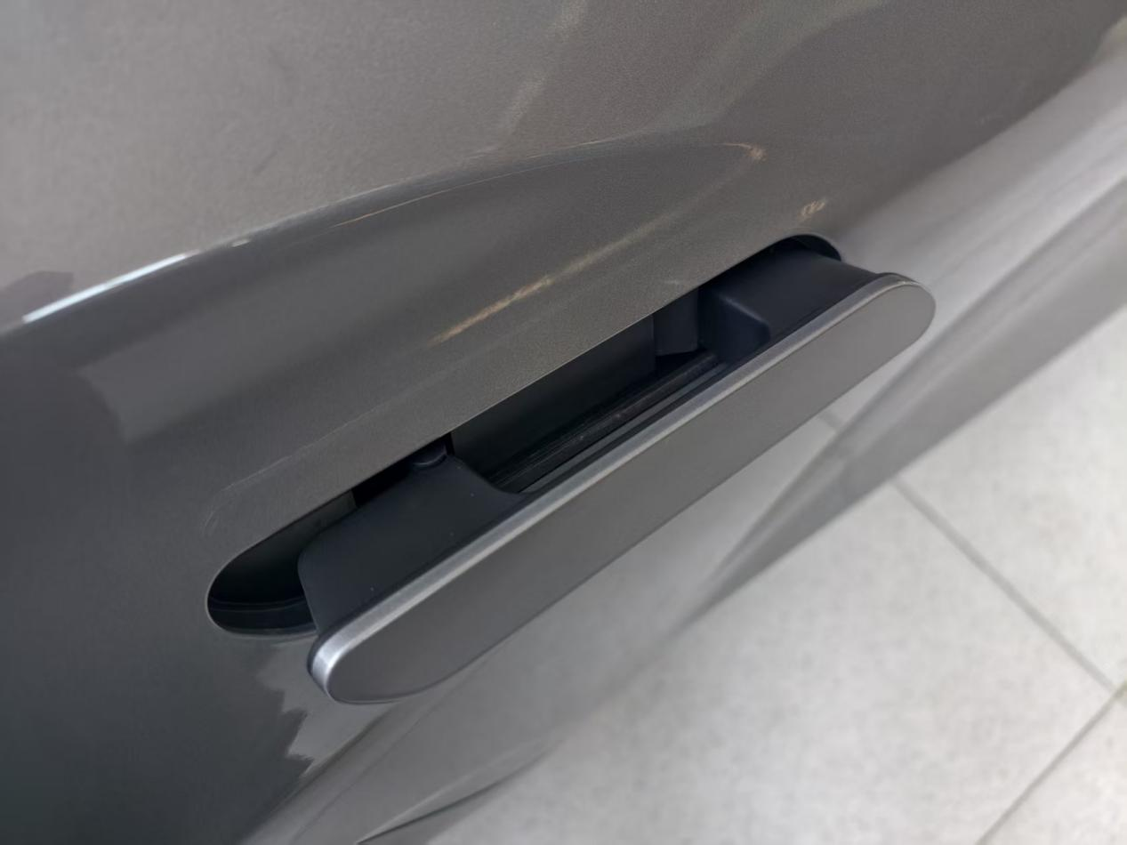 隐藏门把手让侧面车身一体性更好,收回去后和车身是完全融入一起了