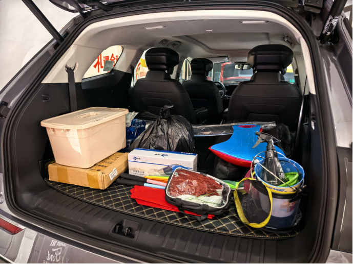 现在这个设计,我爸妈试坐时直说“方便多了”。第三排我1米75的个子坐进去,膝盖离前排还有一拳距离,短途乘坐完全没问题。后备箱在七座全开时能塞下两个行李箱,如果第三排放倒,直接变成小货车,婴儿车、露营装备随便装。