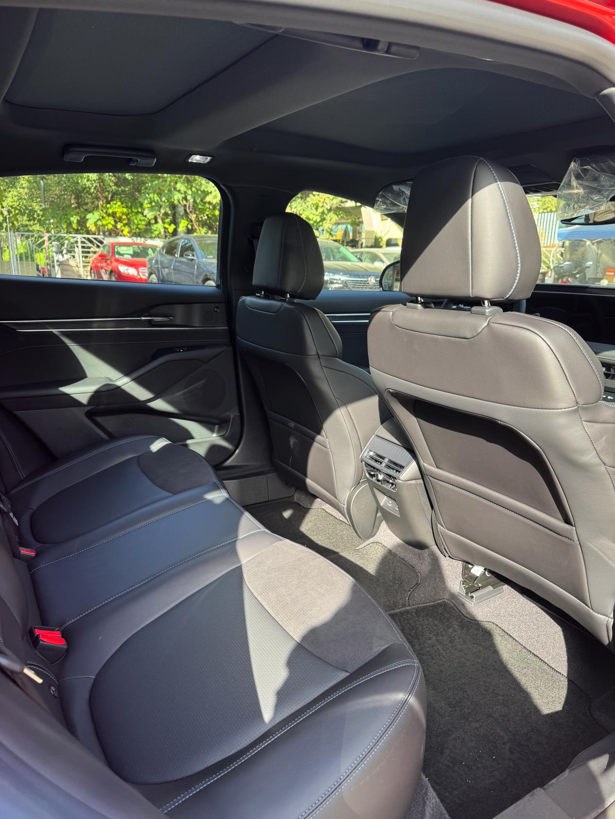 我朋友身高大约1米78,调整好前排正常驾驶坐姿后,他坐进后排,膝盖距离前座靠背还有超过两拳多的距离,轻松跷起二郎腿毫无压力。另外,座椅的纵向长度也足够,对大腿承托不错。从实际体验来看,它宣传的“大五座”和同级最优的二排腿部空间,基本是属实的。对于经常需要满载家人出行或者在乎后排舒适度的用户来说,这个“大空间”确实是它的一个核心优势。